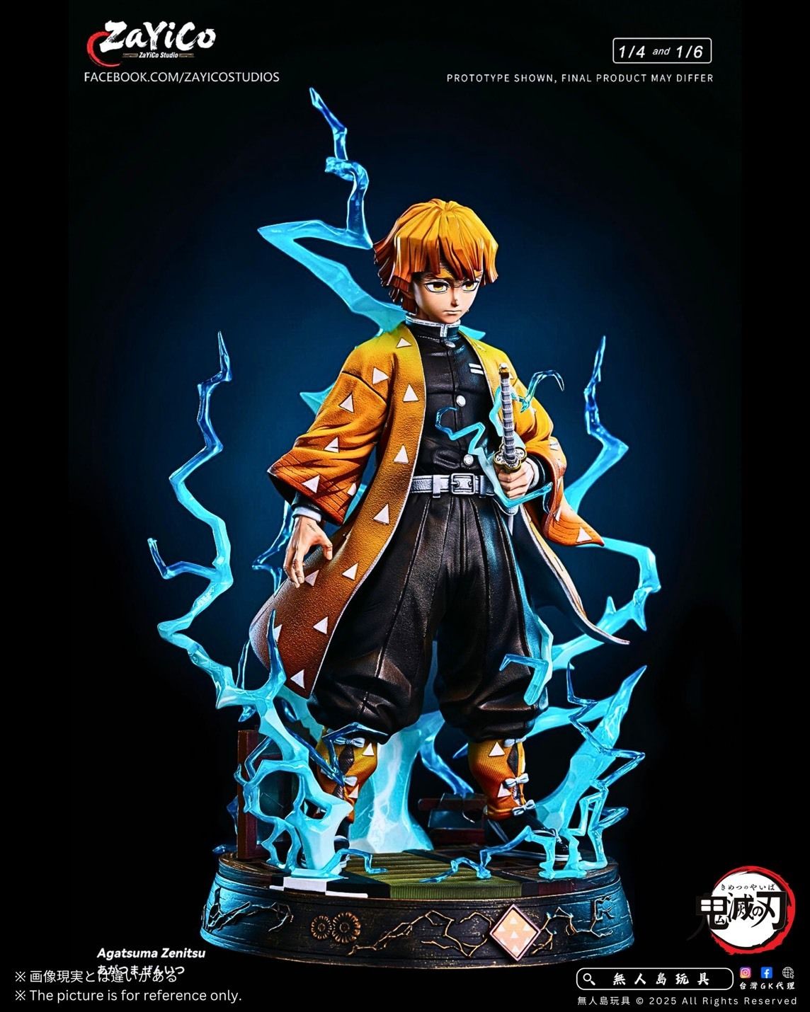 Zayico Studio's overseas private order for the third double-scale statue of Demon Slayer: Kimetsu no Yaiba Resonance series [Azuma Zenitsu] will be available for pre-order this week!Brand: ZayicoWork: 【Azuma Zenitsu】 Overseas Private Limited Edition StatueSize of the work: 1/6 [approximately height 37cm*width 23cm*depth 21cm] 1/4 [approximately 56cm high * 35cm wide * 32cm deep]Limited quantity: 1/6 [199 pieces] Global unified numbering 1/4【99 pieces】Global unified numberingScheduled time: October 2025Production materials: resin, transparent resin, PUShipping time: Q4 2025-Q1 2026Special Notes:1. The product includes two head carvings and a head carving base The two versions of the Contempt head sculpture have interchangeable faces (with and without shadow lines on the forehead)2. The lightning color of the product base is available in two versions: yellow and blue. Players can choose the version they like to purchase.3. Both colors of lightning have lightning-shaped water stickers to enhance the overall effect4. The large-scale version of lightning will try to make both the left and right lightning bolts light up.3. The fourth and fifth Flame Pillars and Akaza will be announced later.