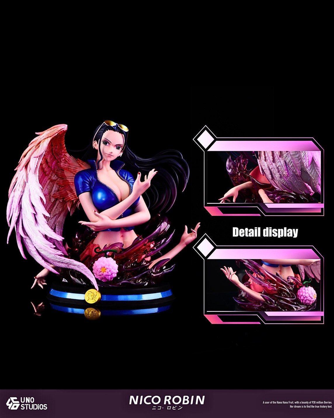 Studio: UNO StudioProduct Name: 1/4 RobinEst. Completion: 2026 Q1Size: (H) 23.5 cm x (L) 26 cm x (D) 23 cmLimited Number of Units: 288Product IP: One PieceProduct Role: RobinProduct Features: Hot-Blooded AnimeProduct Scale: 1/4Height Range: 16-25cmProduct Material: High-quality PU + imported resin + transparent resinSpecial Description:Components: Head, body + base, 3 arms, wings.