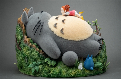 Team: CHIKARAProduct: Sleeping Totoro and MeiDimensions: 19cm tall, 23cm wide, 15cm deepAvailable: Limited to 128 units in ChinaMaterial: Resin, PU, silicone, flocked hairFeatures: Plush to the touch, tummy is comfortable with a pressable soft silicone, and Mei can be positioned anywhere!
