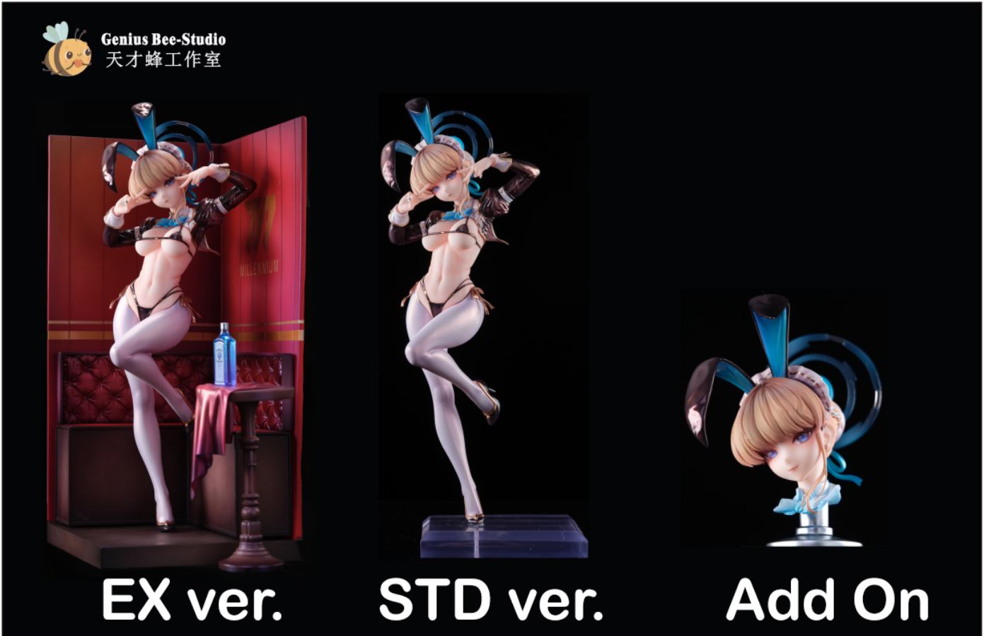 Studio: Genius Bee StudioProduct Name:Blue Archive Asuma Toki Bunny GirlSize:A Version 1/7: (H)28.5 x (L)10.3 x (W)10.3A EX Version 1/7: (H)28.3 x (L)16 x (W)17B Version 1/4: (H)47 x (L)17 x (W)17B EX Version1/4: (H)46.7 x (L)26.3 x (W)28DLC 1/7: (H)8.5 x (L)5.8 x (W)6.5DLC 1/4: (H)14.1 x (L)9.7 x (W)10.9Limited No Of Unit:Product IP:Blue ArchiveProduct Role:Asuma TokiProduct Features: 18+ FemaleProduct Scale:1/7,1/4Height Range: 26-35cm, 36-50cmSpecial Description:EX Nude DLC Facial expressions cannot be selected