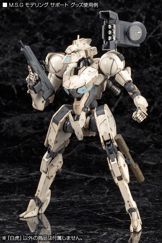 Frame Arms 1/100 Byakko Plastic ModelPlastic model1/100 scaleTotal Height: about 19 cmPrototype Production: Katsuhiko Hori, Yoji ShinkawaAccessory: Laser rifle × 2, sword × 1, sensor (for left and right)Publisher: KotobukiyaPrice: 5,800 yen (excluding tax)Scheduled to be released in September 2017