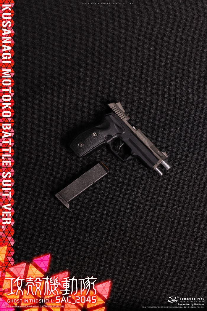 Ghost in the Shell SAC_2045 Kusanagi Motoko Battle Suit VER.DAMTOYS has obtained the formal authorization and supervision of Kodansha and launched the battle suit version of Kusanagi Motoko, the protagonist of the animation Ghost in the Shell SAC_2045.This product uses DAMTOYS's self-developed highly movable female body, striving to show players a variety of movable experiences.In terms of head carving, the team used the image in the animation and added the design of movable eyeballs to perfectly restore the image of the character in the animation.We also attached the night vision goggles accessories in the animation, and used replacement parts to reproduce the shape of the character wearing night vision goggles.In terms of equipment, the combat suits that appeared in the second season of the animation were made of soft materials. We spent a lot of time and energy to restore the precise structure and color separation of the combat suits in the animation, hoping to bring players a different experience from the casual version.In terms of weapons, we equipped the assault rifles and pistols in the animation, and designed the internal structures of these two sci-fi weapons under the supervision of the copyright holder, so that the assault rifle can remove the magazine, load and equip the scope, and the pistol can also remove the magazine and pull the slide.In addition, we also specially designed the scene platform to restore the combat scenes in the second season of the animation.~~~~~~~~~~~Product name: Ghost in the Shell_2045 Kusanagi Motoko Battle Suit Version DMS044Number: DMS0424Production : DAMTOYSBarcode : 6976204930570Size: 1/6 scale (about 28cm high) Copyright: @ShirowMasamune, ProductionI.G / KODANSHA / GITS2045Product list:-High-precision female head sculpture (including movable eyeball system)-Highly movable body-Various hand shapesClothing:-Soft combat tightsAccessories:-Night visiongoggles -Assault rifle and its magazine-Pistol and its magazine and holster-Exclusive landscaping platform