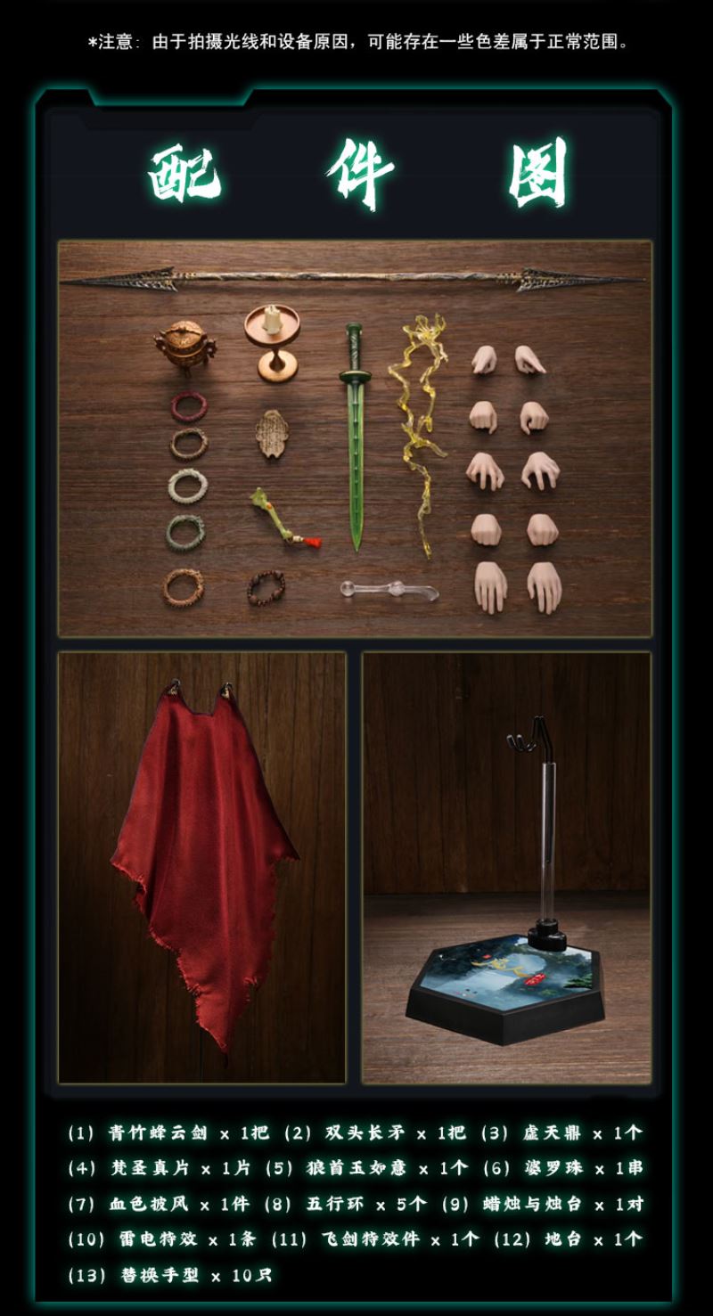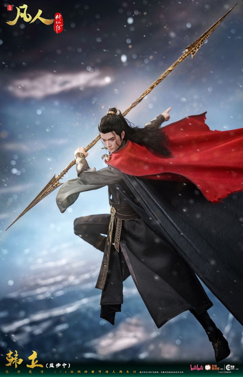 Brand: CosmicCreationsProduct Name: Han Li – Foundation Establishment Peak (1/6 Scale Action Figure)Item Code: CC9136IP Origin: A Record of a Mortal’s Journey to ImmortalityScale: 1/6Height: Approx. 31 cmMaterials: ABS, PVCEstimated Shipping Window: Q2–Q3 2026Case Quantity: TBDFigure Includes:Head Sculpt & BodyRooted hair head sculpt with movable eyes ×11/6 custom-made articulated body ×1Interchangeable hands ×10Clothing & Fabric AccessoriesOuter coat with wired hem ×1Wired cloak ×1Inner robe ×1Gauntlets ×2Trousers ×1Boots ×1 pairBloody cloak ×1Weapons & PropsGreen Bamboo Cloud-Swarm Sword ×1Double-headed spear ×1Xutian Cauldron ×1Sacred Brahma Scripture Tablet ×1Wolf-head jade ruyi ×1Bodhi Bead Bracelet (wired) ×1Five Elements Ring ×5Candle ×1Candle holder ×1Lightning effect part ×1Flying sword effect stand ×1Adjustable figure stand ×1