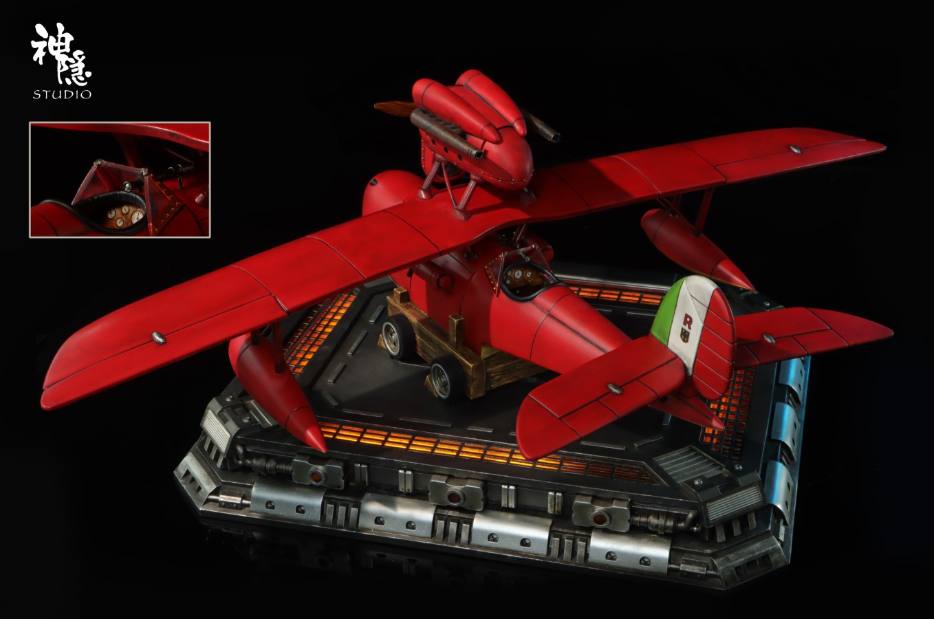 Brand:ShenYin StudioProduct name:Porco RossoES:99Size Porco Rosso:H10CMSize plane:H13 W46 D29CMSize base:H4 W29 D23.5CMSize set:H18.5 W46 D29.5CMMaterials:PU+ResinEstimated release time:Q4 2025*Base with LED(constant light and breathing light)