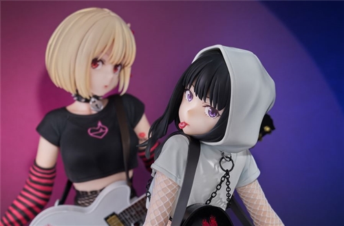 From the TV anime Lycoris Recoil, Nishikigi Chisoku and Inoue Takina are made into scale figures wearing the eye-catching outfits from episode 7!She is dressed in a black rock-style outfit and is seen holding a guitar.The electric guitar held by Senzoku is intricately sculpted down to the smallest detail, including the head, pegs, strap, and pickups, and even the guitar strings are reproduced to look just like the real thing.Her outfit features a black T-shirt, miniskirt, and unique tights with different designs on each side.The fishnet stockings on the left leg are made of cloth material, giving them a realistic texture.We have recreated Takina dressed in a casual, street-style rock outfit.The electric guitar that Takina holds in his hands is intricately sculpted down to the smallest detail, including the head, pegs, strap, and pickups, and even the guitar strings are reproduced to look just like the real thing.The pose of her looking back with a guitar on her back and one leg raised has been carefully crafted down to her costume, hair, and body lines, making for a beautiful, well-balanced sculpture that looks good from any angle.The parka features a large hood and is adorned with accessories made from real chains, while the mesh inner is made from cloth material, giving the costume a realistic texture.They can be displayed together with Nishikigi Senzoku ~Band ver.~ (sold separately), so be sure to add Sensoku and Takina to your collection, as they have a different atmosphere to those in the anime.