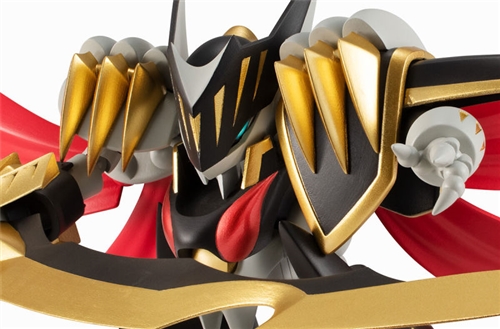 " NXEDGE STYLE ราชาแห่งดาบ ริวจินมารุ " สร้างชุดเกราะหนักทั้งตัวด้วยสไตล์ที่ประณีตและภาพวาดสีดำและทองอันหล่อเหลา "ดาบราชันโนโบริโมโตะ" ที่ข้อมือขวามีขนาดหนาและมีพื้นผิวโลหะที่ยาวกว่าลำตัวหลัก และมีเสื้อคลุมสีแดงสดที่ด้านหลัง เพลาเคลื่อนที่สามารถปรับมุมได้ตามท่าทาง