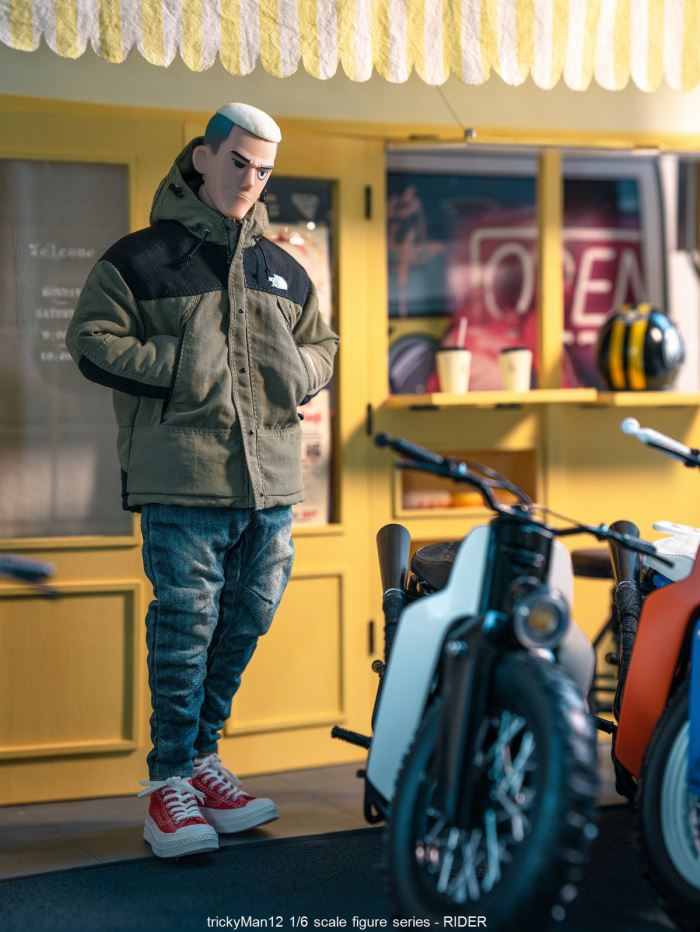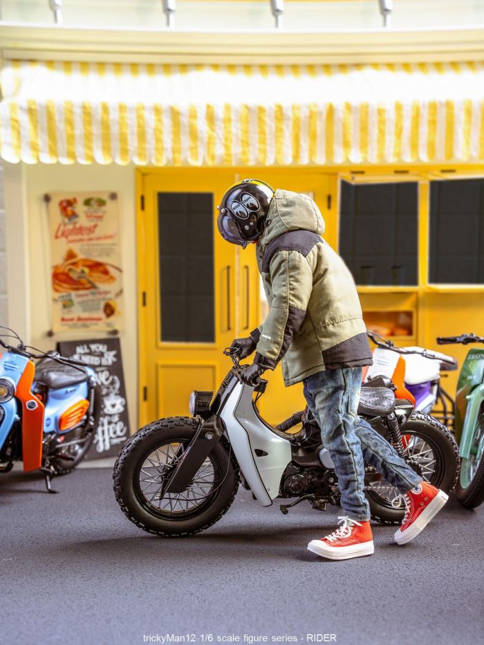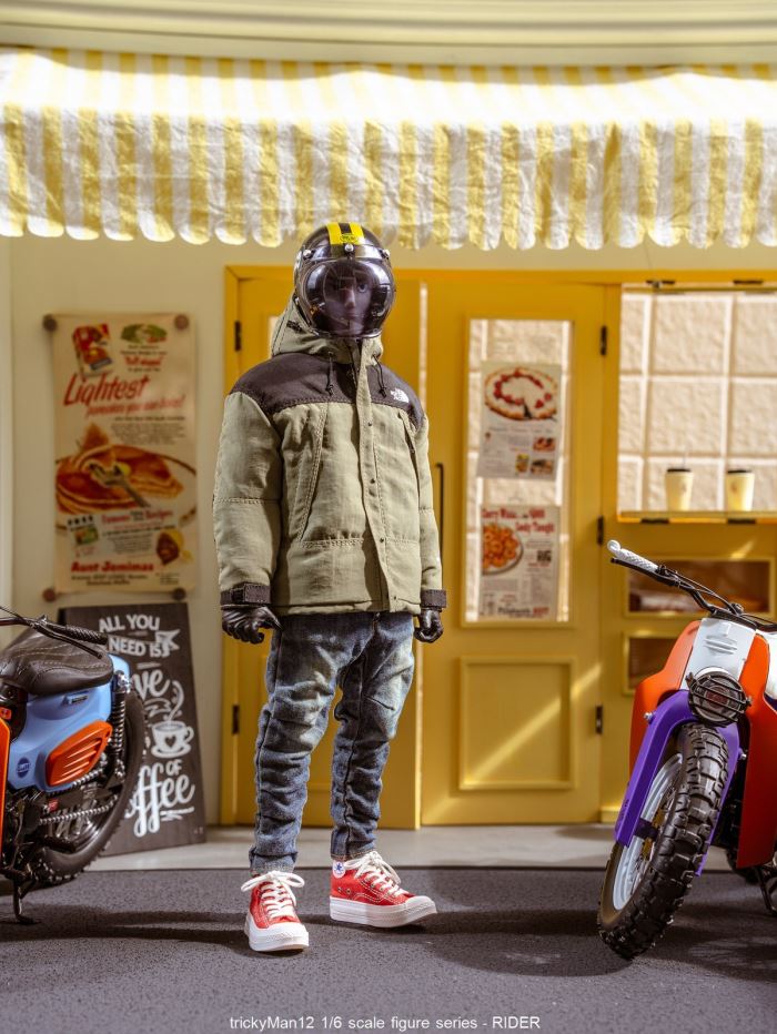 【Product Name】trickyMan12 1/6 RIDER Figure SetArrival Time: Expected mid-to-late January 2026Pre-order Price: 780 RMB/piece* Accessories List : .Helmet. Bubble Glasses (Black/Gray). Bubble Glasses (Transparent). Body. Gloves/Hands . Mountain DownJacket .T -shirt . Three-dimensionalClipping Jeans .Socks .Suedecons1970s Sneakers