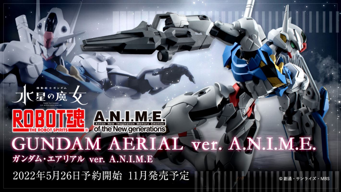 "Gundam Aerial" จากผลงานทีวีล่าสุด "Mobile Suit Gundam: The Witch of Mercury" ปรากฏตัวใน ROBOT Soul ver. ซีรีส์ ANIME ที่เริ่มพัฒนาใหม่! การจองจะถูกยกเลิกตั้งแต่วันที่ 26 พฤษภาคม 2022 (วันพฤหัสบดี) ที่ร้านค้าปลีกทั่วไป ตัวละครหลัก "Gundam Aerial" เป็นสามมิติอยู่แล้วด้วยแอ็คชั่นฟิกเกอร์ "ROBOT Soul ver. ANIME" ด้วยโครงสร้างร่วมและการแสดงเอฟเฟกต์ต่าง ๆ ที่ได้รับการปลูกฝังในเวอร์ชั่น ANIME ถ่ายทอดซิลลูเอทที่มีลักษณะเฉพาะและการเคลื่อนไหวที่นุ่มนวลได้อย่างสมบูรณ์ แกนหมุนของต้นขาสามารถเคลื่อนย้ายได้ และโครงสร้างเฉพาะรอบเอวทำให้ได้ภาพเงาที่นุ่มนวล ใช้ชิ้นส่วนที่ชัดเจนบนศีรษะและหน้าอก โครงสร้างหลายชั้นตั้งแต่ข้อศอกถึงปลายแขนช่วยให้แสดงออกได้อย่างยืดหยุ่น นอกจากนี้ปืนไรเฟิลและโล่เป็นอุปกรณ์มาตรฐาน ชิ้นส่วนกริปติดอยู่ที่เกราะเพื่อให้จับได้อย่างมั่นคง ไอเท็มสุดหรูที่สร้างสเน่ห์ได้เต็มที่!