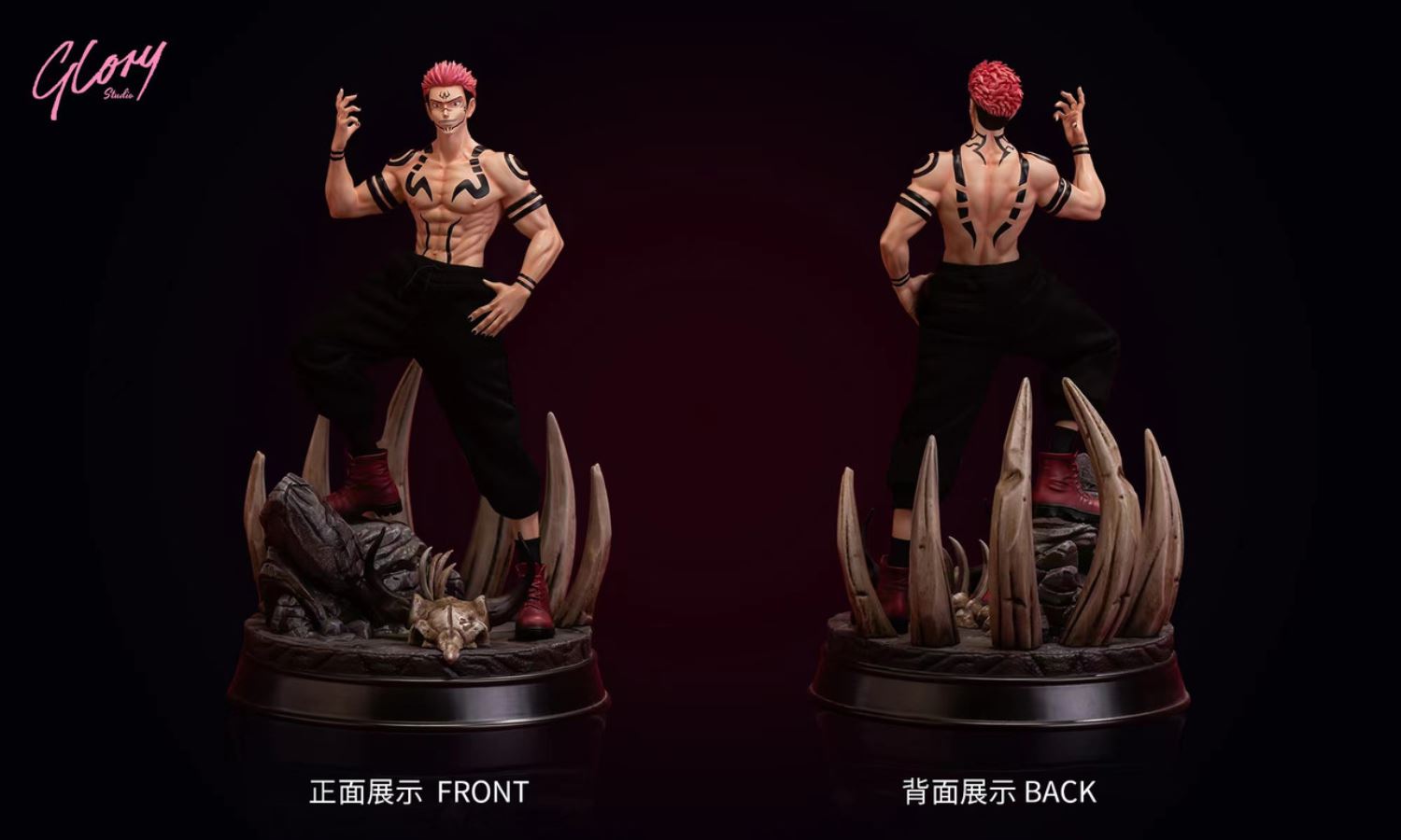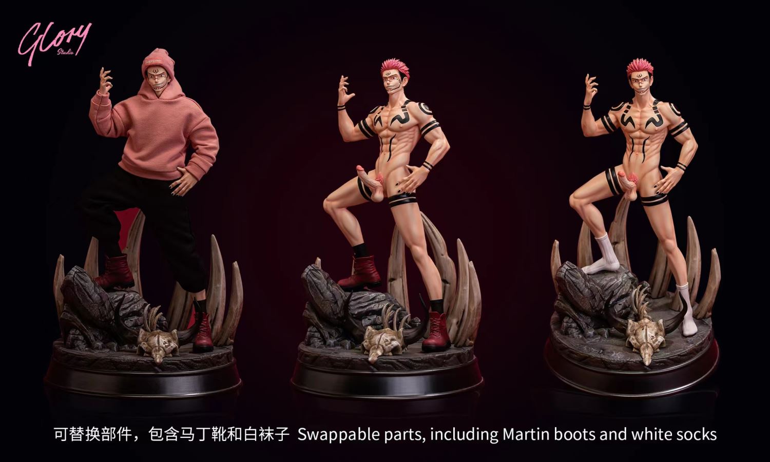 -Brand:Glory Studio-Product:Ryomen Sukuna-ES:150-Size:190 × 200 × 320mm-Release date:TBD*Regular version:Ryomen Sukuna+2 heads+3 dicks+base *Ex versionRegular version+pink hoodie+pink hat