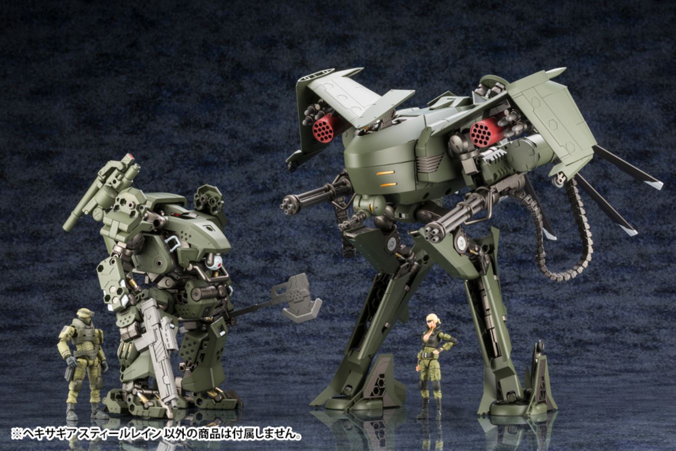 ข้อกำหนดรูปแบบ: ?เฮลิคอปเตอร์โจมตีนี้สามารถเปลี่ยนจาก "โหมดยานพาหนะ" เป็น "โหมดมนุษย์" ?ห้องนักบินที่ปิดสามารถเปิดและปิดได้ช่วยให้สามารถวางยูนิตผู้ว่าการขายแยกต่างหากภายใน ?หน่วยที่นั่งภายในห้องนักบินมีคุณสมบัติ "ปรับเอนนอน" และ "เลื่อน" เพื่อปรับให้เข้ากับขนาดของรุ่นที่วางไว้ด้านใน ?ห้องนักบินที่มีรายละเอียดสูงนี้มีคันโยกแบบปรับได้สองแบบและคันเหยียบแบบเท้าปรับได้เพื่อให้ผู้ใช้สามารถเพลิดเพลินไปกับการจัดตำแหน่งผู้ว่าการรัฐที่โดดเด่นได้ ?ใบพัดหมุนสามารถหมุนได้อย่างอิสระและพับใบมีดได้ ? "เสื้อกันลมหุ้มเกราะ" รวมถึงสองประเภท; ชุดหูฟังภายใน "รุ่นหลัง" และหลังคาโปร่งใส "รุ่นด้านหน้า" เพื่อให้ผู้ใช้เลือกได้ ?“ 20mm Gatling Gun” ที่รวมมานั้นสามารถแยกออกจากกันและใช้แยกต่างหากคล้ายกับหน่วยอาวุธหนัก นอกจากนี้ยังสามารถใช้งานร่วมกับลิงค์ M.S.G Belt เพื่อเพิ่มพลังการยิงโดยรวม ?สามารถนำ“ ขีปนาวุธอากาศสู่พื้นผิว” ที่รวมอยู่แยกออกจากเสาได้ นอกจากนี้เสาสามารถขยายและจัดแนวจรวด ?โดยใช้สิ่งที่แนบที่รวมอยู่ในหน่วยหลักและ HEXA-G.R.A.M ระบบ“ จรวด” ที่รวมอยู่สามารถถอดแยกออกและขยายได้อย่างอิสระ นอกจากนี้ยังสามารถใช้โดยจับคู่กับสิ่งที่แนบมาซึ่งใช้เพื่อยกระดับอิสระสำหรับชุดโมเดลนี้ ?เข้ากันได้กับ Flying Base Neo ที่ขายแยกต่างหากเพื่อสร้างการแสดงผลที่น่าทึ่ง รายการรวม: ?ชุด Steelrain Model x1 ? 20mm Gatling Gun x2 ?ขีปนาวุธอากาศสู่พื้นผิว x2 ? Rocket Launcher x2 ?ส่วนเสริมสำหรับ Rocket Launcher 2 ชุด ?การ์ดเก็บถาวร x1 ? KOTOBUKIYA