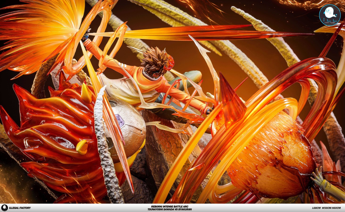 Brand:ILL StudioProduct name:Sawada Tsunayoshi vs Byakuran GessoScale:MH/1:4Size:H60 W68 D56CMEstimated release time:Q3 2026*Bonus Luce+display stand(ring and sippy cup removable)
