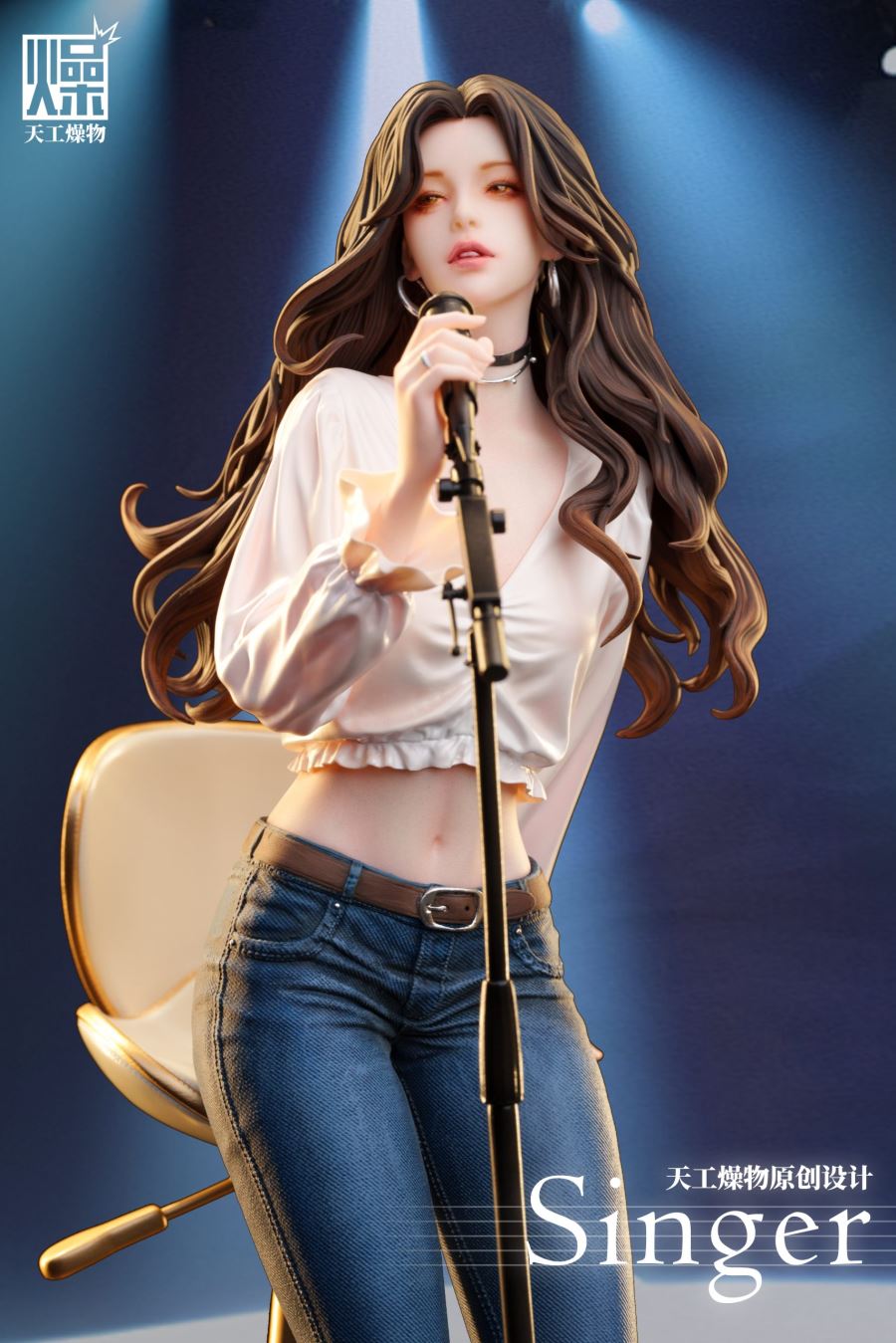 Studio:TGZW StudioProduct Name:SingerEst. Completion:2025 Q2-Q3Size:(H)41CM(W)17CM(D)19CMProduct IP: OriginalProduct Role:SingerProduct Features:Other originalsHeight Range:36-50CMSpecial Description:Configuration: Character + Platform + Commemorative Coin