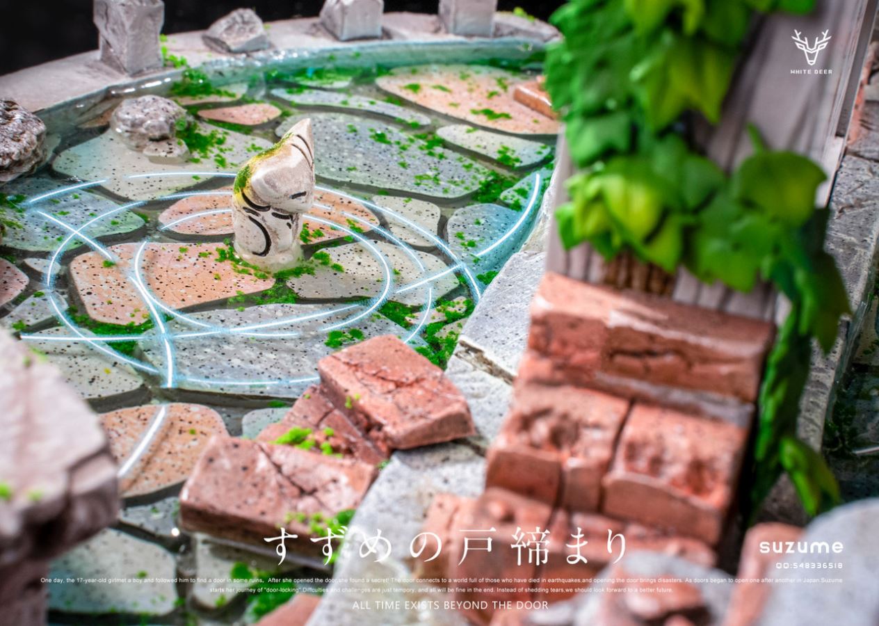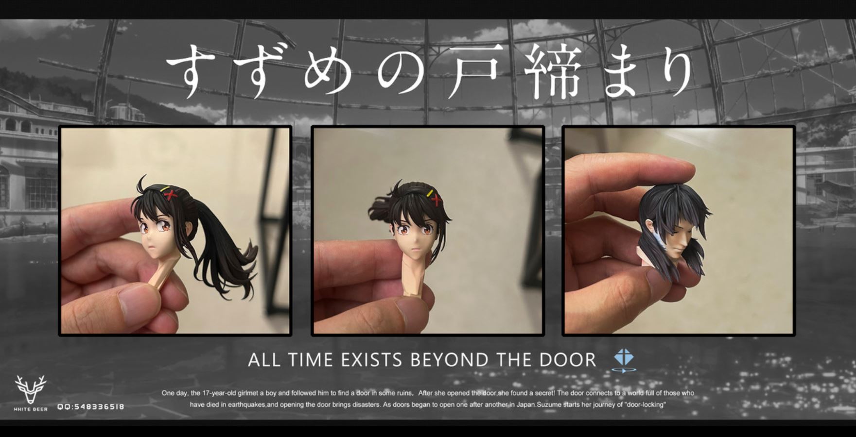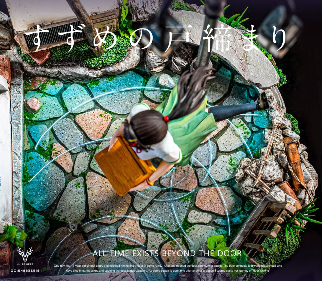 Brand:White Deer StudioProduct name:SuzumeES:198(Regular)/99(EX)Size Regular:H40.6 W40.2 D27CMSize EX:H40.6 W55.3 D27.5CMEstimated release time:Q4 2025*ConfigurationRegular:single figure+door+the scene inside the door+water surface base+street lampEX:three figures+door+the scene inside the door+the scene inside the back door+cement base+beach base+street lamp
