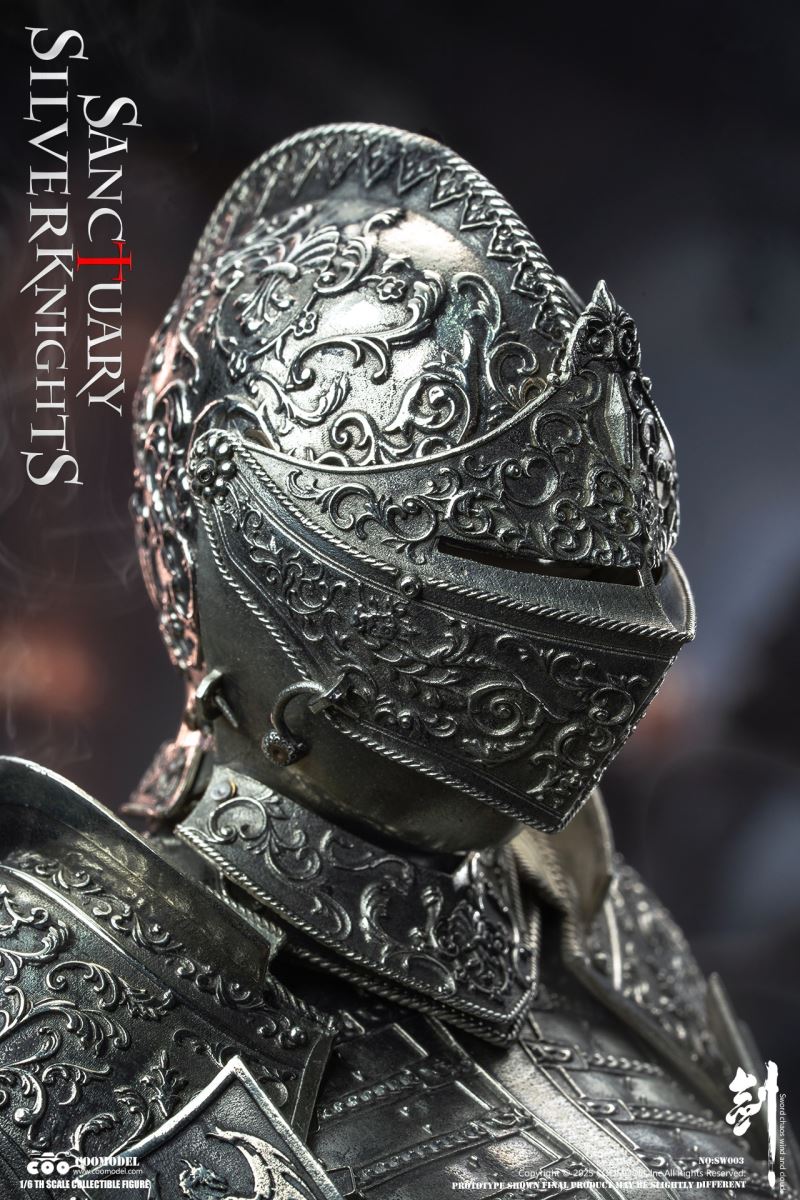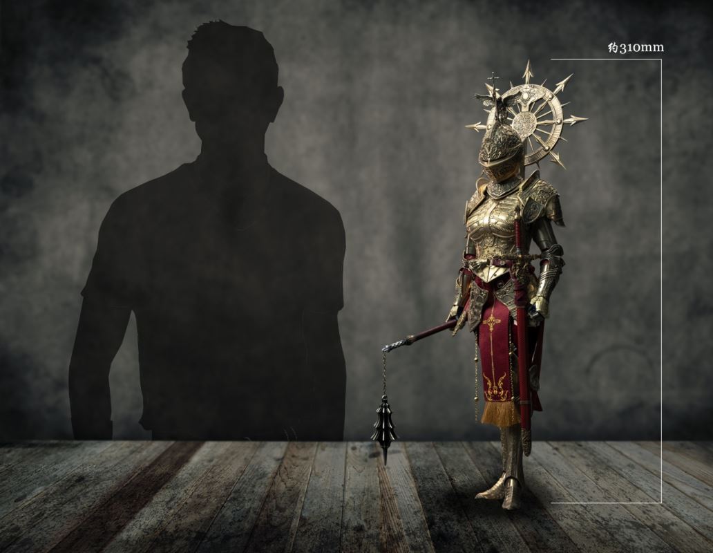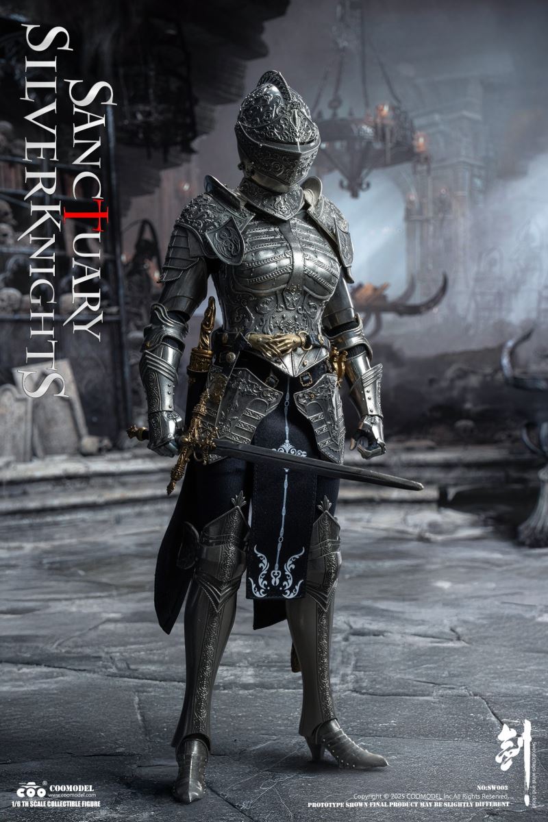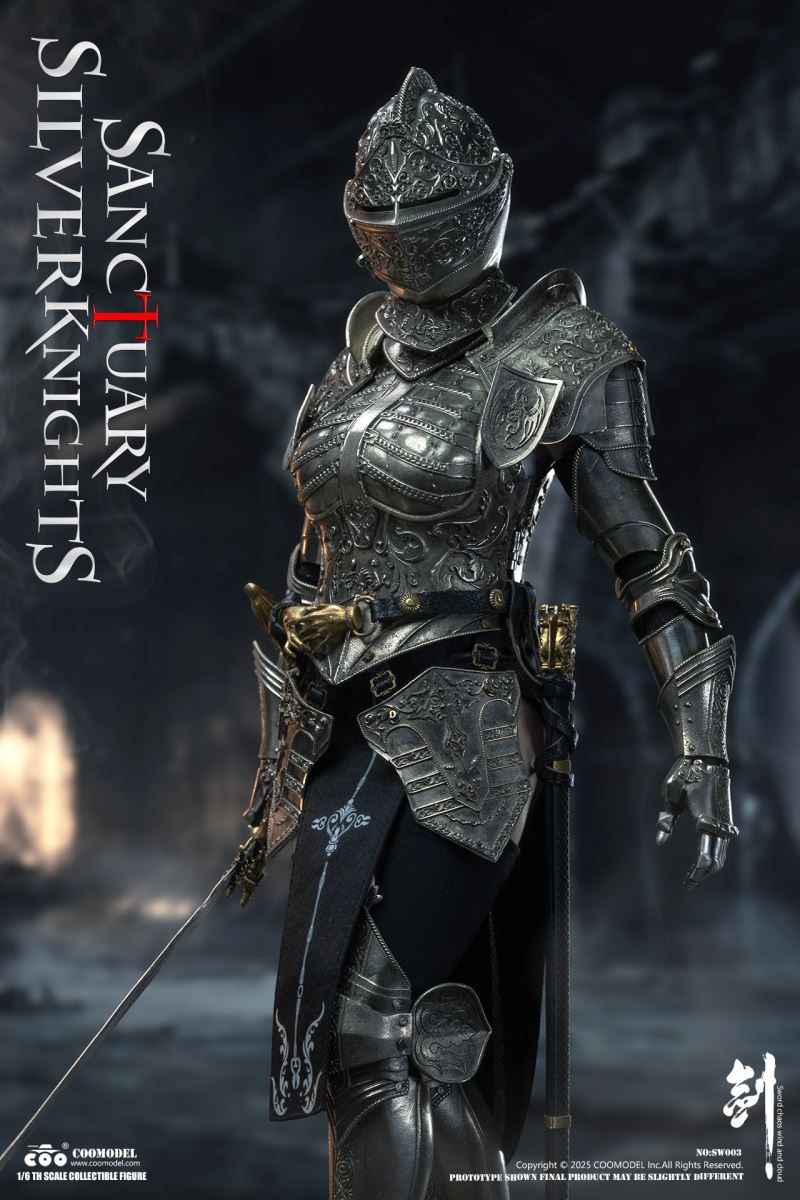 COOMODEL 1/6 NO.SW002 SWORDS OF CHAOS - GOLDEN TEMPLE GUARDIAN (BRASS EDITION)Barcode:6971242122437The suit of armor is 100% made of copper materialsThe 1/6th Scale Golden Temple Guardian Collectible Figure Specially Features:- One (1) rooted hair head sculpt of a Female Guardian with articulated eyes- One (1) highly articulated female body- Four (4) pieces of interchangeable armored handsCostumes:- One (1) fully enclosed gold engraved helmet with angel ornament on top- One (1) gold engraved halo back accessory- One (1) pair of gold engraved shoulder armors- One (1) gold engraved chest and back armor- One (1) pair of gold engraved arm armors- One (1) gold engraved hanging skirt armor- One (1) pair of gold engraved leg armors- One (1) pair of gold engraved battle boots- One (1) red embroidered high-slit one-piece inner dress- One (1) pair of red thigh-high socks- One (1) leather waist belt with gold hand-shaped buckleWeapons:- One (1) gold engraved cross longsword with scabbard- One (1) gold engraved dagger with sheath- One (1) flailAccessories:- One (1) red brick-style round base stand--------------------------COOMODEL 1/6 NO.SW003 SWORDS OF CHAOS - SILVER TEMPLE GUARDIAN (NICKEL SILVER EDITION)Barcode:6971242122444The suit of armor is 100% made of copper materialsThe 1/6th Scale Silver Temple Guardian Collectible Figure Specially Features:- One (1) rooted hair head sculpt of a Female Guardian with articulated eyes- One (1) highly articulated female body- Four (4) pieces of interchangeable armored handsCostumes:- One (1) fully enclosed silver engraved helmet- One (1) pair of silver engraved shoulder armors- One (1) silver engraved chest and back armor- One (1) pair of silver engraved arm armors- One (1) silver engraved hanging skirt armor- One (1) pair of silver engraved leg armors- One (1) pair of silver engraved battle boots- One (1) black embroidered high-slit one-piece inner dress- One (1) pair of black thigh-high socks- One (1) leather waist belt with gold hand-shaped buckleWeapons:- One (1) gold engraved cross longsword with scabbard- One (1) gold engraved dagger with sheath- One (1) pole hammerAccessories:- One (1) gray brick-style round base stand
