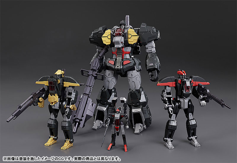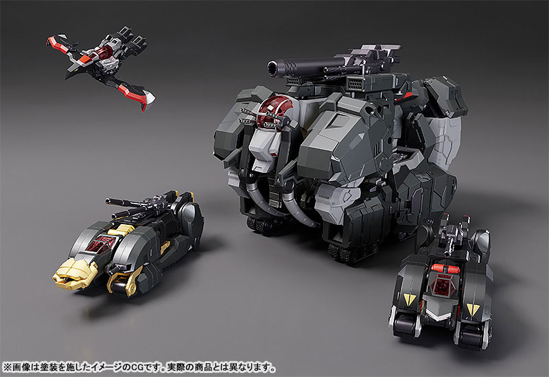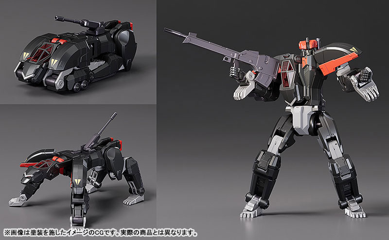 Pre-painted Gattai Posable FigureSize: Approx. H300mm (Dancouga in gattai form and to the top the of the head / Non-scale)Material: Zinc Alloy & Plastic[Set Contents]Eagle FighterLand LigerLand CougarBig MossDancoukenDaigan (separated into 4 weapons)Flight BoosterHand Parts with Articulated FingersDedicated Display Stand[First-Run Exclusive Bonus]Eagle Fighter Aggressive EffectSculptor: Caloan (GOD BRAVE STUDIO)Product Design: U-TOMConcept Sketch: Kotaro Ando (Studio GS)Beyond humans, beyond beasts, now, to even greater heights!Mecha Smile steps into a new frontier with a new combining Dancouga action figure!-Complete transforming alloy model. Approximately 30cm in height (in Dancouga form, to top of head). Joints of the model are articulated.-The model is based on the latest design by Masami Obari.-Create the combination of the four Beast Machines: Eagle Fighter, Land Liger, Land Cougar and Big Moth without any additional parts.-Each machine is made with alloy parts, providing a sturdy feel.-Transform the shoulder and chest parts to create a silhouette closer to that seen in the anime series.-Dancouken and Daigan are included.-Daigan can be separated into the weapon of each Beast Machine.-Flight Booster is included. The gun barrels can be moved forward when equipped.-The rear main gun is articulated, allowing for the creation of Dancouhou Formation.-Hand parts with independently articulated fingers are included.-Ryo's fighting pose can also be created.-A dedicated stand engraved with a Beast Machine Squad relief is included. The main unit and optional parts can be displayed on the stand.-Set Contents: Eagle Fighter, Land Liger, Land Cougar, Big Moss, Dancouken, Daigan (separated into 4 weapons), Flight Booster, Hand Parts with Articulated Fingers, Dedicated Display Stand-Package art is drawn by Masami Obari.DANCOUGA Partner