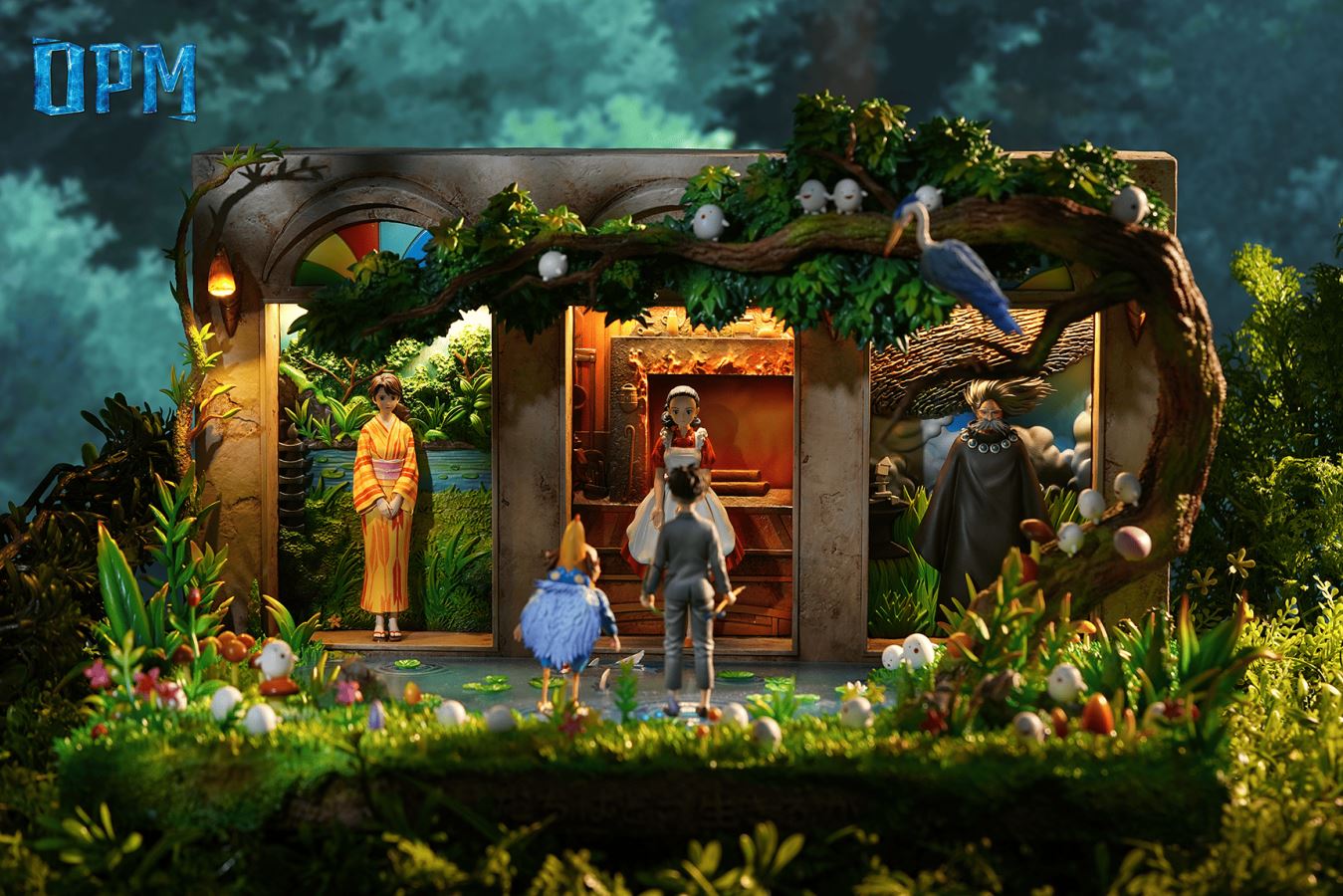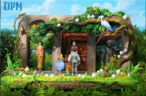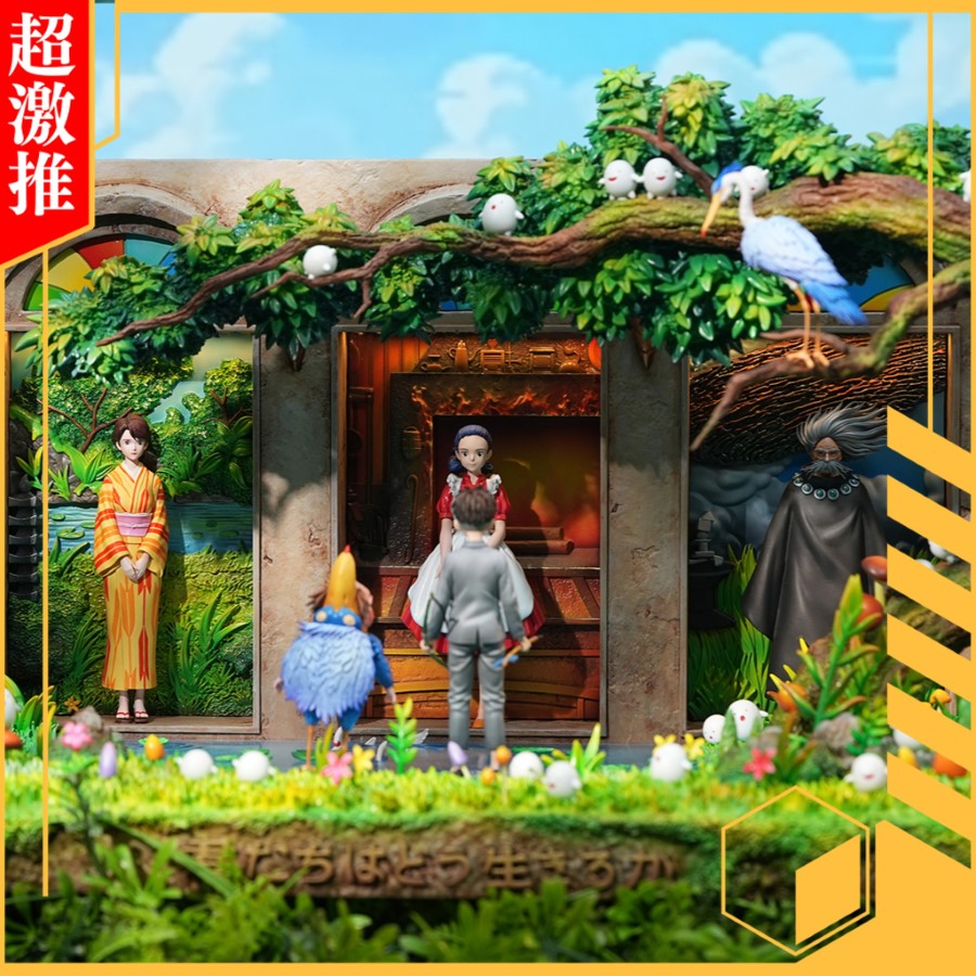 OPM Hayao Miyazaki desktop scene series 008-What kind of life do you want to liveTeam: OPM-StudioWork: Hayao Miyazaki desktop series 008-What kind of life do you want to liveMaterial: imported resin + imported PU + transparent parts + LED light groupConfiguration: real person + bird uncle (heron) + heron + fire girl + Xia Zi + tower owner + wow wow + scene platformSize: width 40cm depth 30cm height 25cmPrice: deposit XXX total price 2XXXNumber of units: domestic XXXDescription: This product Xia Zi, fire girl, tower owner, the back is relief, all hand-painted, can light up, wall chandeliers can light up, real people and bird uncle can be placed at will, no assembly position, the total number of characters is fiveEstimated delivery time: Q3~Q4, 2025