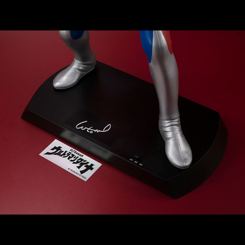 Pre-painted Complete FigureSize: Approx. H400mmMaterial: PVC, ABS, OtherBattery Type: AAA Battery x3 (sold separately)Features: Light & Sound Gimmick[Set Contents]-Main figure-Base & Supporting pole part-Alternative arm part (left/right)-Sticker for base (2 types)-Instruction paper*Light & sound gimmick [LED light emission] [Ultra eye] [Color timer (blue light emission/red flash)] [SE] [Transforming sound], [Voice sound], [Timer flash sound], [Solgent beam sound]Tsuburaya Productions