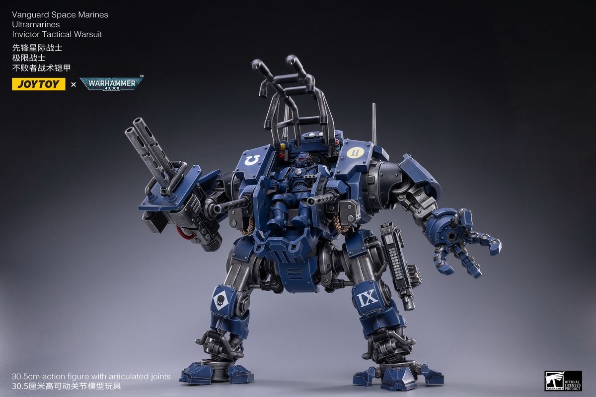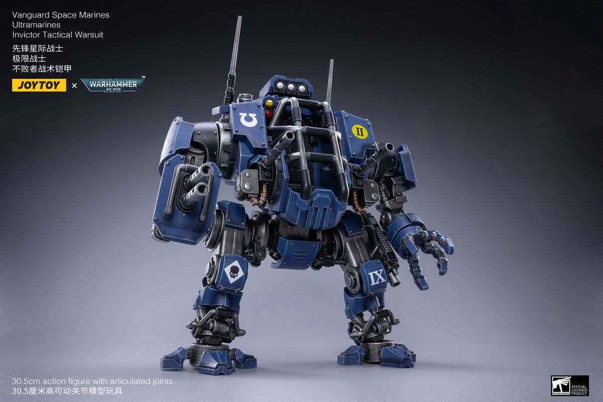 UPC 6973130371910Model JT1910Product Name Invincible Tactical ArmorEnglish Name Vanguard Space MarinesUltramarines Invictor Tactical WarsuitSpec Scale: 1/18Height: 30cmGiftbox Size(mm) 320*350*210Weight(kg/set) 5kgPacking 4 SETS/ CTNCarton Size(cm) 64*35*42Overseas retail price (USD/Set) 199Domestic retail price 899Shipping time January 2022