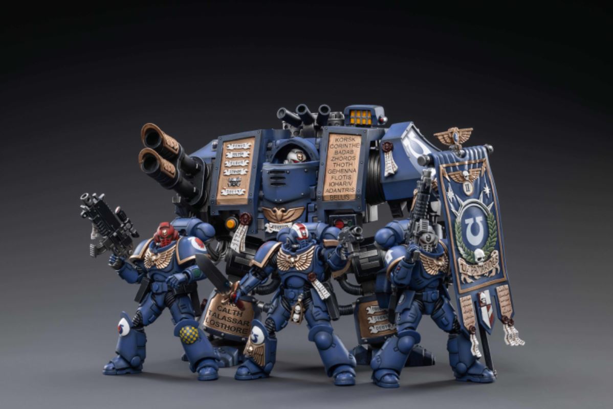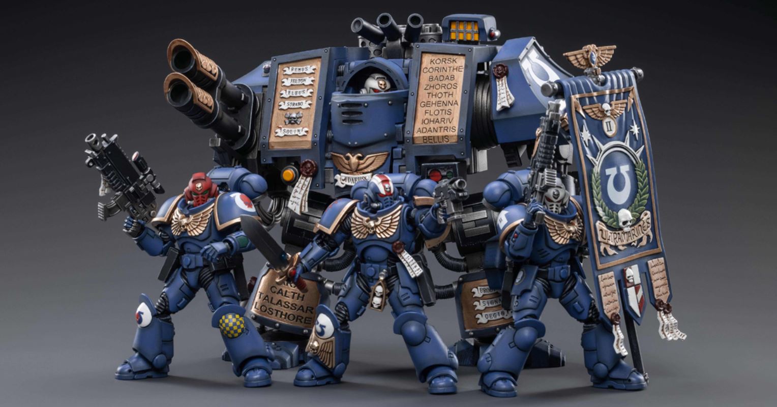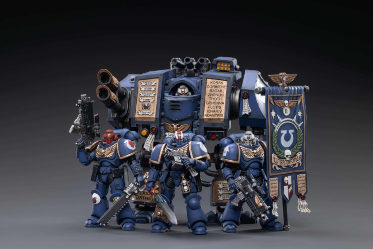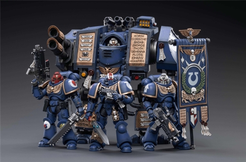 JOYTOY, a well-known toy brand specializing in 1/18 scale sci-fi military dolls, and the highly acclaimed Warhammer 40000 authorized action figure series, following the announcement of Black Legion Havoc Squad last week , today continues to announce The new pre-order news of Warband Heroes and Sacred Dreadnought Mecha is currently undecided. The current delivery time and price are undecided. Interested Warhammer fans can email: maxhuang@hxjoytoy.com .The new works of Warhammer 40000 released by JOYTOY this time are three sets of Battle Heroes and Sacred Dreadnought Mecha, both of which are colors belonging to the Ultra Warriors. Warband Heroes will feature Primaris Lieutenants, Veteran Sergeants, and Primaris Standard Bearers. The biggest feature is the gorgeous embossed decoration on the power armor, the elite symbol and the holy seal streamer; in addition, the chapter flag is also the first time in the series. JOYTOY's design team has put a lot of thought into characterizing these hero units perfectly.On the other hand, the Divine Dreadnought Mecha is the second vehicle in this series. The design team has wonderfully reproduced the body structure and modeling details. With the experience accumulated over the years, the heavy texture and old paint of the Mecha have been reproduced. It is JOYTOY's specialty; this time, the luxurious embossing and text on the body, the fineness of modeling and the exquisiteness of painting are definitely a major selling point worth starting.JOYTOY - JOYTOY Warhammer 40000 Warband HeroProduct Specifications: Plastic modelMaterial: ABS•PVCDelivery date and price are undecided, please contact the official email for pre-order: maxhuang@hxjoytoy.comUltramarines Heroes - Primitive Adjutant ErastasProduct Dimensions: Height 11.7cm Width 6.5cm Depth 5.1cmWeapons: Energy Sword and Bolter PistolUltramarines Hero - Veteran Sergeant CusterProduct Dimensions: Height 11.7cm Width 6.5cm Depth 5.1cmWeapons: Bolter Rifle and Chainsaw SwordUltramarines Heroes - Original Cast Flag Bearer Boska ProductDimensions: Height11.7cm Width 6.5cm Thickness 5.1cmJOYTOY - JOYTOY Warhammer 40000 Sacred Dreadnought MechaProduct Specifications: Plastic ModelMaterial: ABS•PVCDelivery date and price are undecided, please contact the official email for pre-order: maxhuang@hxjoytoy.com
