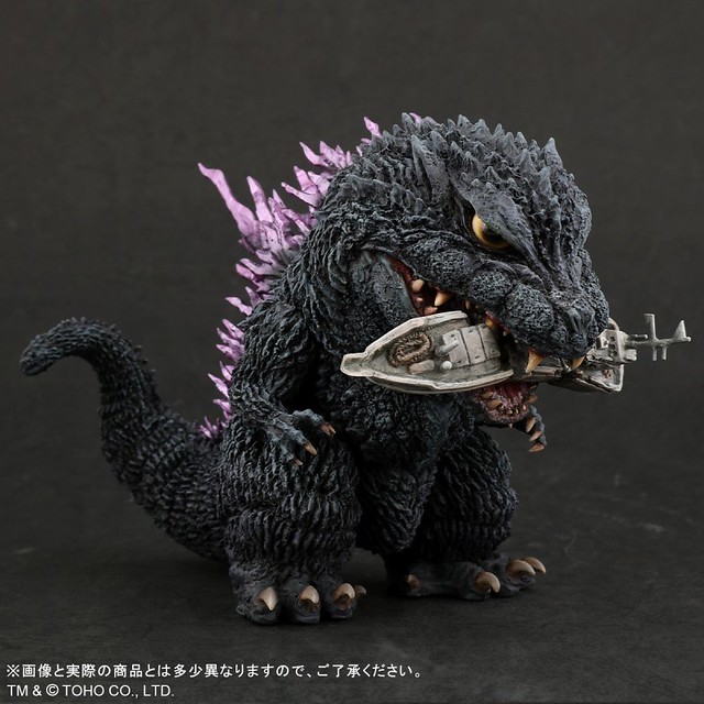 แม้ว่าจะนำเสนอในอัตราส่วน 2.5 หัวที่น่ารัก "DefoReal Gogilla (1999)" ยังคงรักษารูปร่างหัวของสัตว์เลื้อยคลานดวงตาที่คมชัดมีความดุร้ายมากและสีเหลืองของฟันและกรงเล็บทำให้ความรู้สึกทางชีวภาพและการเขียนอย่างประณีตยิ่งขึ้น คมชัดผิวมีหนาม ครีบหลังซึ่งมีลักษณะเป็นเปลวไฟถูกนำเสนอในสีม่วงเมทัลลิกและทั้งหมดนั้นหล่อมาก