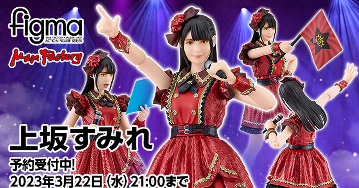 From Max Factory, figma Sumire Uesaka is now available as a new product in the action figure series figma! It will be available only at the GOODSMILE ONLINE SHOP and will be released in October 2023. Voice actress Sumire Uesaka, who is celebrating her 10th anniversary as an artist, was filmed using a full-body 3D scanning system! Based on the scan data, all prototypes and coloring are three-dimensionalized under the supervision of the person himself. An action figure that allows you to recreate a variety of scenes with the smooth and precise joints of figma. Pursuing reality by making full use of 3D coloring for face parts. You can enjoy it according to the situation with two different expressions. Accessories include a microphone, flag, script, sake bottle, and a figma-only pedestal with a movable support that allows for a variety of actions.figma Sumire UesakaPre-painted plastic articulated figurenon scaleHeight: about 145mmPrototype: Max FactoryProduction cooperation: Maki AsaiPublisher: Max FactoryDistributor: Good Smile CompanyPrice: 12,800 yen (tax included)Scheduled to be released in October 2023*The photos shown may differ slightly from the actual product. (C) KING RECORD