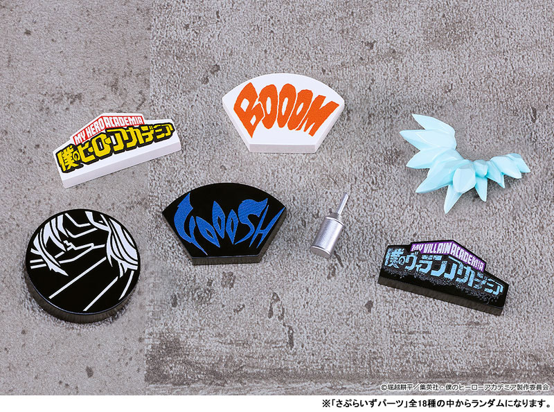 SpecificationsPre-painted Figure6 Packs/BoxSize: Approx. H70mm (non-scale)Material: PlasticFeatures: EaselDetailsRandomly assorted from 6 total types of character + 18 total types of surprise parts.Sculptor: Shichibee (Matsuda Model), SELECT DCooperation: NendoronFrom the anime My Hero Academia comes a lineup of adorable Nendoroid Surprise figures! Both heroes and villains are included in the lineup!Character lineup (random):-Izuku Midoriya-Katsuki Bakugo-Shoto Todoroki-Tomura Shigaraki-Dabi-Himiko TogaSurprise parts (random):-A total of 18 different surprise parts can be collected.*Product is sold in collectible, blind-box style.*One boxset includes every character figure in the set.*Every surprise part in a series cannot be collected with a single boxset.The combination of character figures and surprise parts is random.CopyrightKohei Horikoshi/Shueisha/My Hero Academia Production Committee