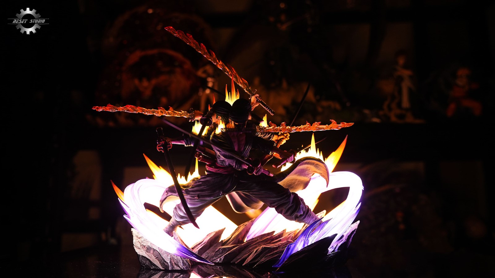 Studio: Reset StudioProduct Name: Asura Draw Sword Dance of the Dead Zoro of the Demon Aura Nine Sword StyleSize: (H) 31 cm x (D) 30 cm x (W) 34 cmLimited No Of Unit: 288Product IP: One PieceProduct Role: ZoroProduct Features: Hot-blooded AnimeProduct Scale: POPHeight Range: 26-35cmProduct Material: Imported resin, imported PUMore than 10 kinds of lighting effects, brightness, flashing frequency, can be switched and controlled at will, remote controlThe product has two effects of fluorescent and luminous display