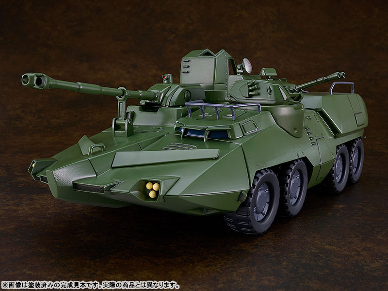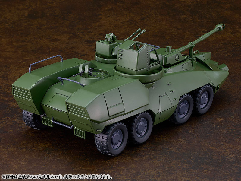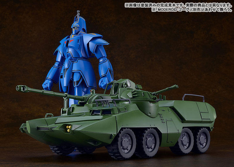 SpecificationsAssembly Type Plastic ModelSize: Approx. L230mm (non-scale)DetailsSculptor: T-REXMiniature Figure Sculpting: Liquid StoneCooperation: mffpFrom the anime series Giant Gorg comes the first MODEROID plastic model of the Carrier Beagle, an amphibious vehicle used as a base of operations by the protagonists!-Approx. 230 mm long. Each wheel is connected to a metal shaft and can be rotated. Tires are made of rubber.-The 175 mm cannon and 40 mm autocannon offer rotational movement and adjustable firing angles-The 12.7 mm heavy machine gun can be rotated.-The hatches on the left and right sides of the torso can be opened.-Two unpainted miniature figures of Captain and Dr. Waive in the same scale are included.-The various parts of the mecha have been separated into different colored runners and pre-painted parts, making it easy to recreate the mecha from the series with a simple assembly.CopyrightSunrise