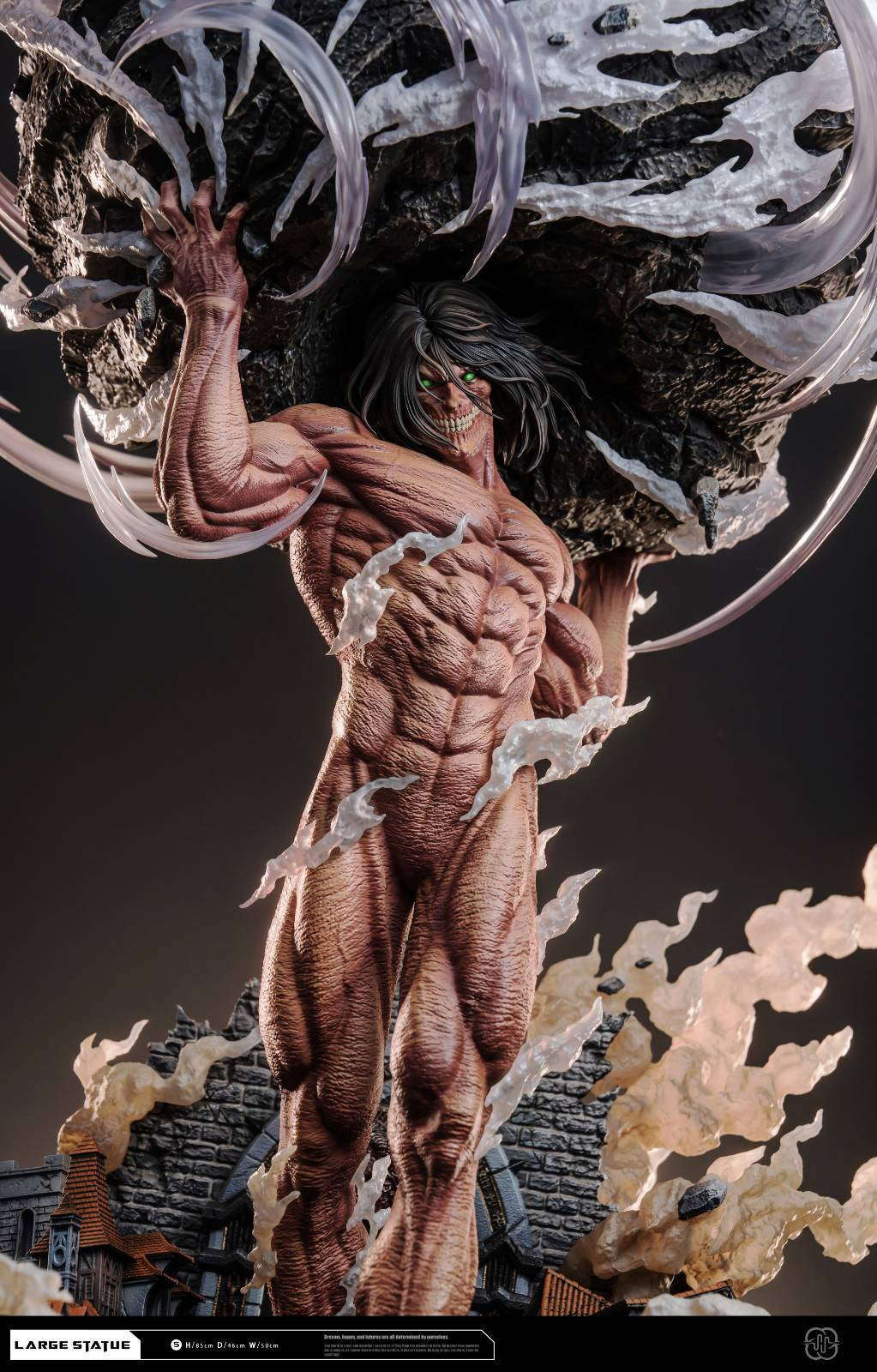 Studio: Hertz StudioProduct Name: Attack on Titan Eren Blocks the GateEst. Completion: 2026 Q1Size: (H)85cm x (W)50cm x (D)46cmLimited No Of Unit: Edition Size:120 piecesProduct IP: Attack on TitanProduct Role:ErenProduct Features: Hot-blooded animationHeight Range: 71-90cmProduct Material: PU+PolyresinSpecial Description: Character eyes with lights