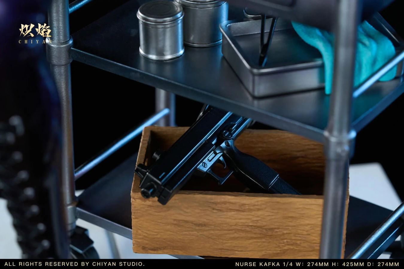 Studio: CHIYAN StudioProduct Name: Honkai: Star Rail Heart Throbbing Nurse Cosplay Series KafkaEst. Completion: 2026 Q1Size: (H)43cm x (W)27cm x (D)27cmLimited Number of Units: 188Product IP: Honkai: Star RailProduct Role: KafkaProduct Features: Other AnimeProduct Scale: 1/4Height Range: 36-50cmProduct Material: PU + resin, high-definition printed bangs, real fabric black stockings, etc.Configuration:Standard Version: Figure + base (removable cape, complete shoulders)Deluxe Version: Standard Version + one pair of replacement legs (real black stockings + bare feet + high heels)DLC: Alloy sword + glowing special effects parts