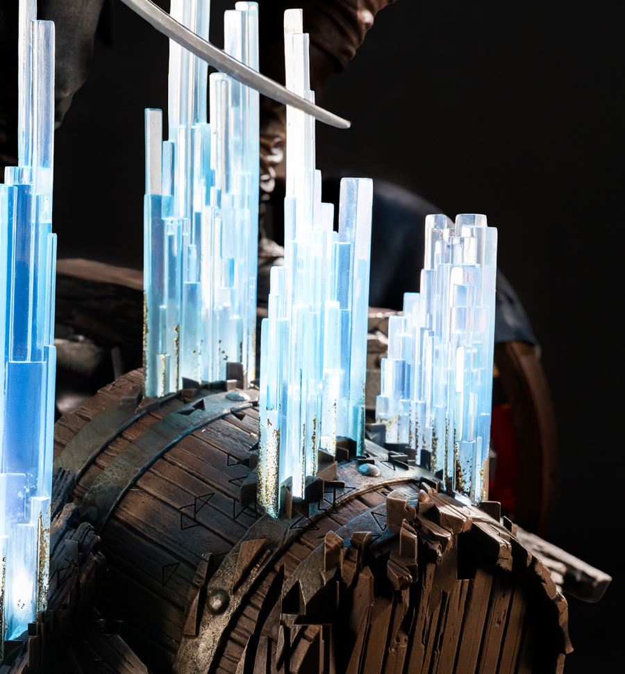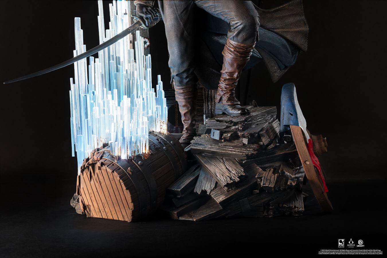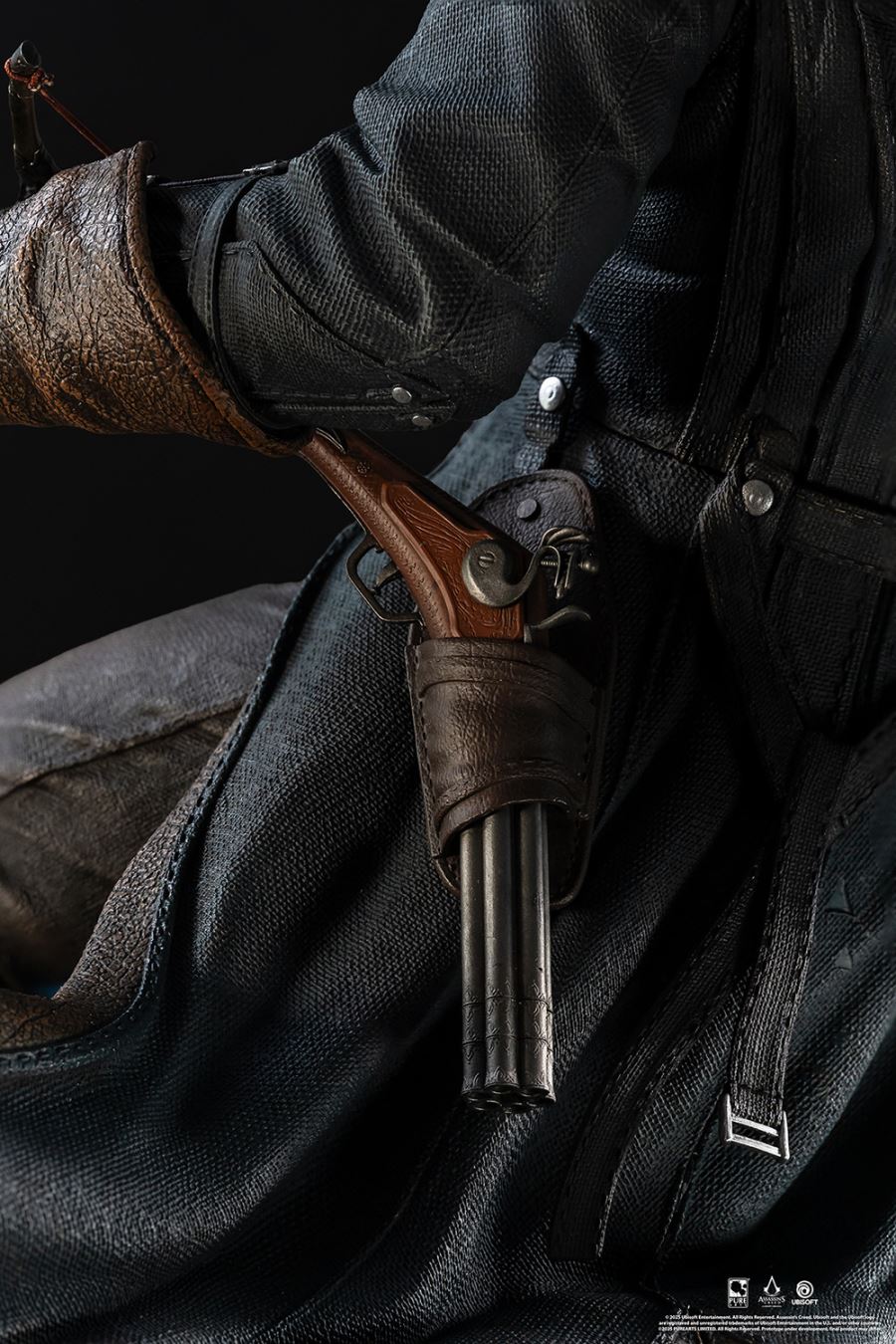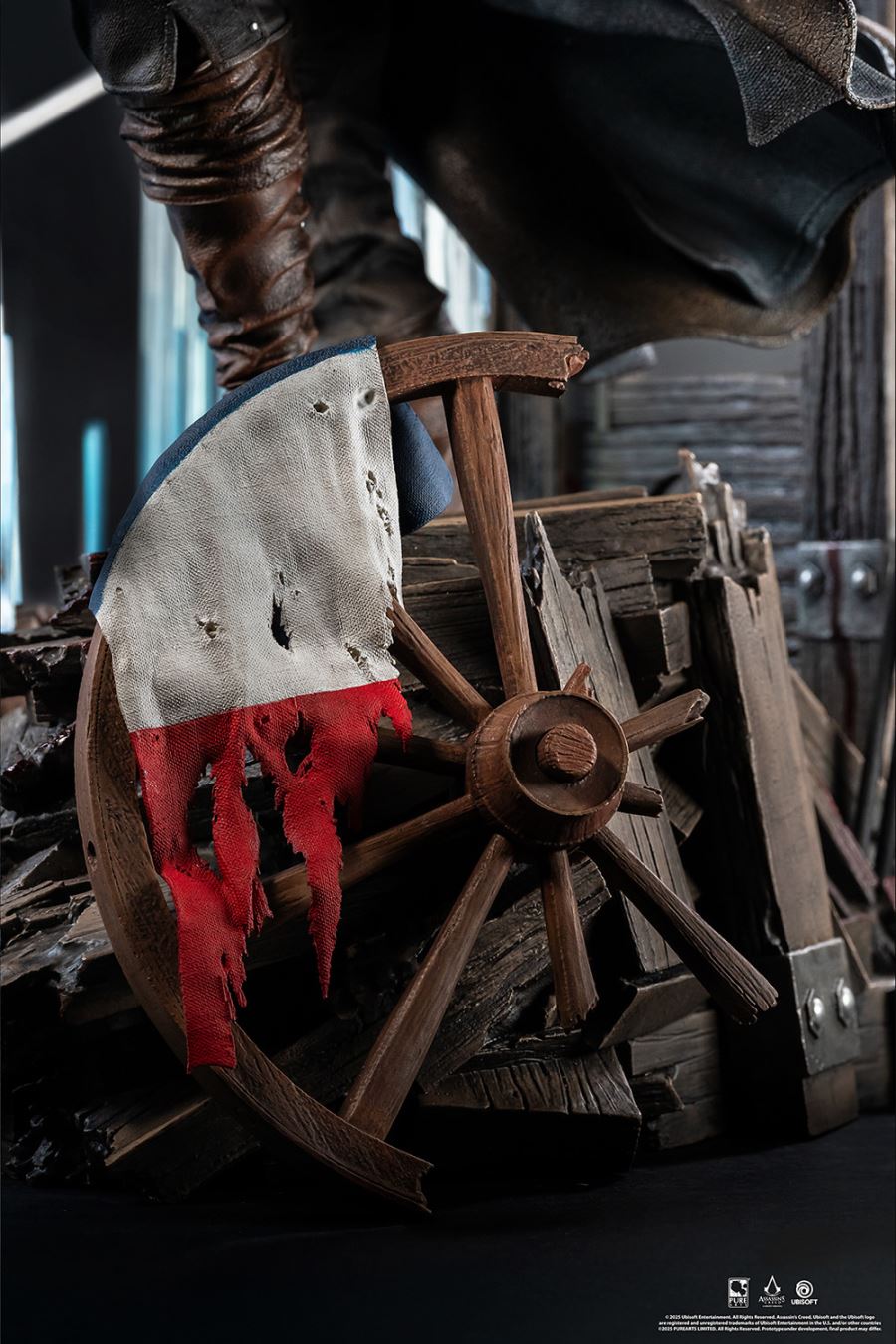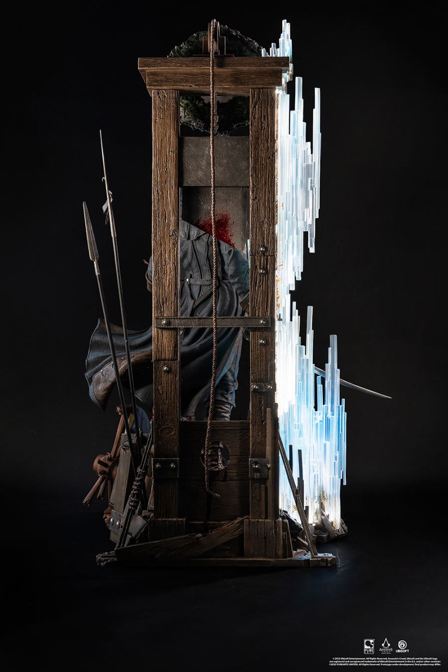 Step into the heart of the French Revolution alongside Master Assassin Arno Dorian, protagonist of Assassin’s Creed Unity.Arno stands atop debris and remnants of the uprising with his sword in one hand and phantom blade crossbow in the other. Behind Arno a weathered guillotine looms, crowned with a wreath of flowers with the defiant inscription, “La liberté ou la mort.” A torn French flag lays amongst the ruins at his feet, echoing the chaos of the Revolution.The PureArts signature LED-lit Animus effect materializes from his right side, illuminating the tumultuous scene. Don't miss your chance to add this Animus Arno 1:4 Scale Statue to your Assassin's Creed collection today!MaterialsPolystonePowerLED Power Supply Method: AC Adapter