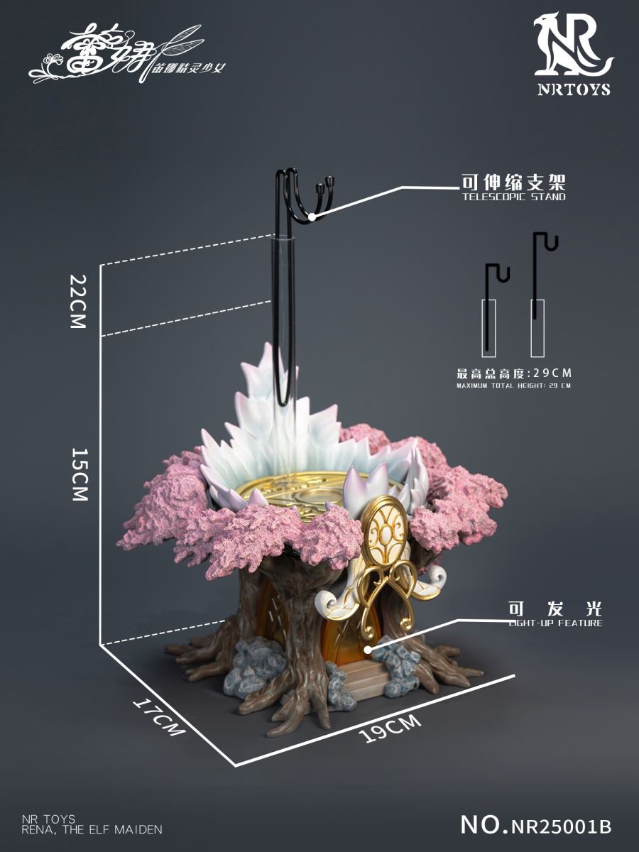 Brand: NRTOYSProduct Name: Elf Girl: LenaScale: 1/6Item Number: NR25001A (figure) NR25001B (scene base)Material: PVC, ABS, cloth, leather, metalPre-order Deadline: October 22, 2025Release Date: Q2 2026Accessories List:NR25001A (figure):Head model with movable eyes *1Female body with movable rubber-covered basic endoskeleton *1Right shoulder armor *1Chest armor *1Left forearm armor *1Right forearm armor *1Palm models *6Daggers *2White shoes *2Leg chain ornament *1Clothing List:Genuine leather crimson top *1Genuine leather left upper arm strap *1Genuine leather left forearm sheath *1Genuine leather waistband ornament *1Genuine leather dagger leg holster *1Genuine leather plain white battle pant *1