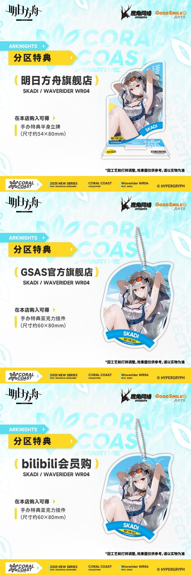 Arknights 1/7 scale model Skadi Rides the Waves WR04 Ver. Pre-sale starts now!You're so close to me... I don't have the confidence to fully protect you!Product Name: Arknights Skadi Rides the Waves WR04 Ver.Pre-sale period: September 26, 2025 - November 5, 2025Estimated shipment: September 2026Product size: Overall height about 155mmProduct Specifications: Plastic painted figure, 1/7 scale ・Comes with a dedicated standArknights Flagship Store Special: Bust StandGSAS Official Flagship Store Special: Acrylic PendantBilibili member purchase bonus: acrylic pendant