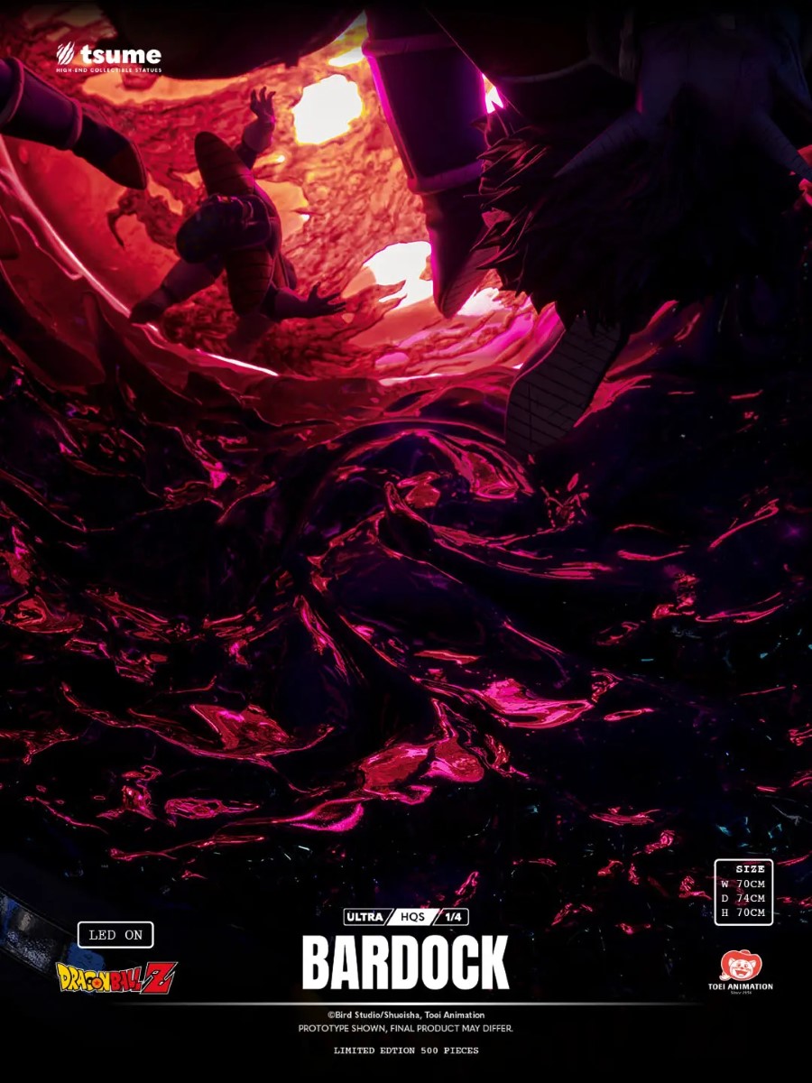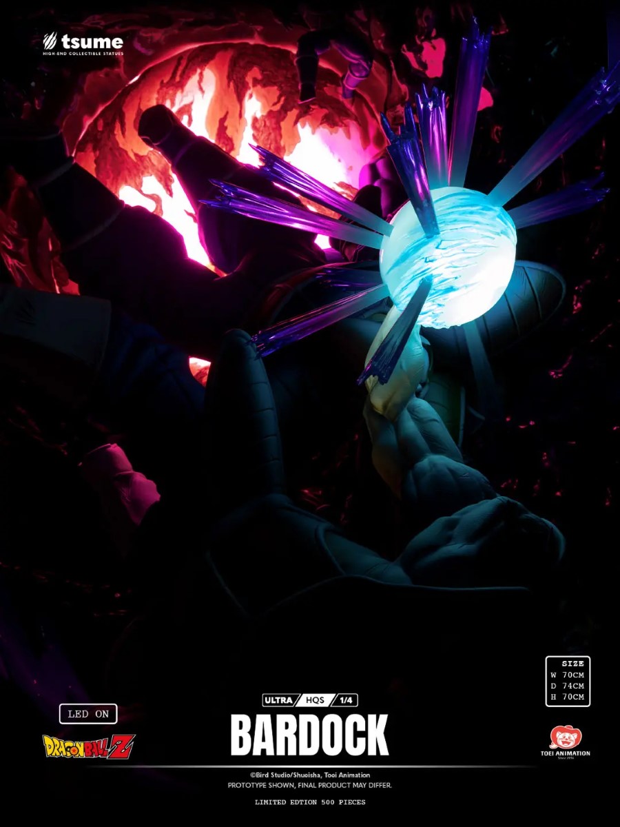 Studio:Tsume StudioProduct Name: Bardock Ultra HQS 1/4 Scale Statue Dragon Ball ZEst. Completion:2026 Q4Size: (H) 70 cm x (D) 74 cm x (W) 70 cmLimited No Of Unit:500Product IP:Dragon Ball ZProduct Role:BardockProduct Features:Other animeProduct Scale:1/4Height Range:70 X 74 X 70 (CM)Product Material:Polyresin