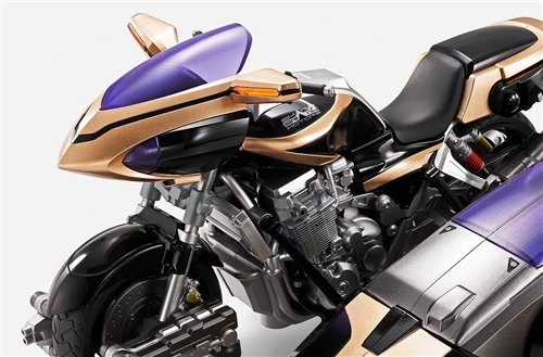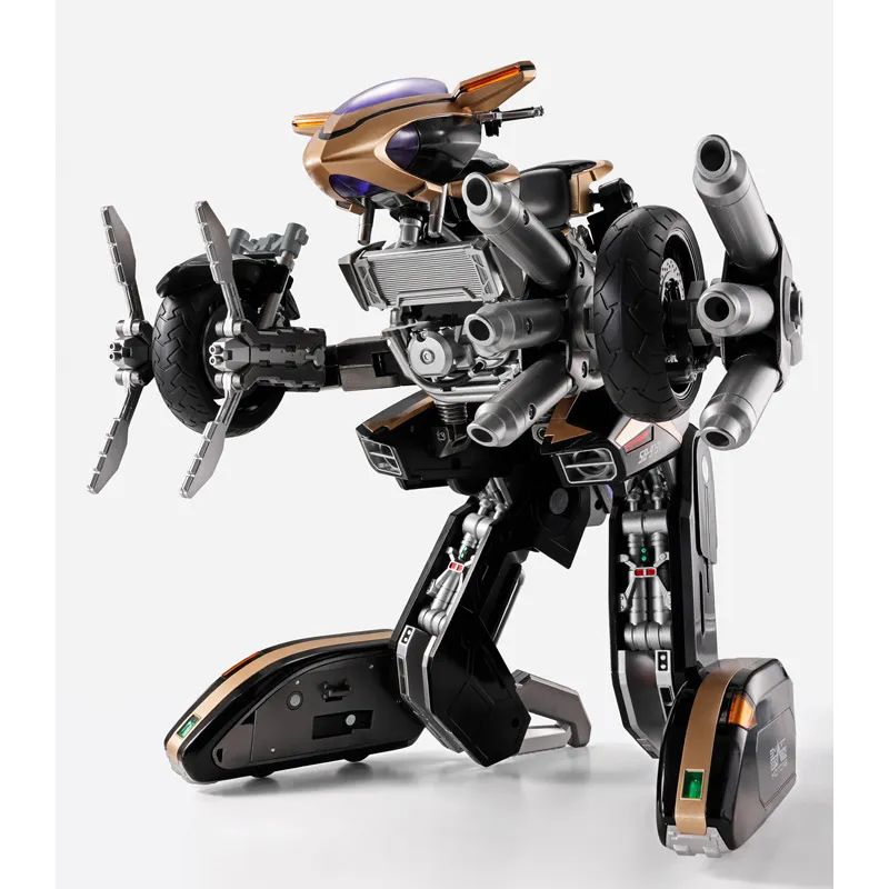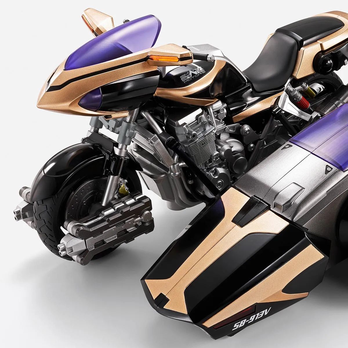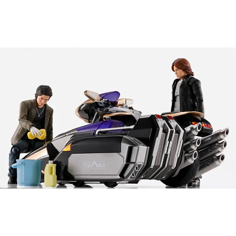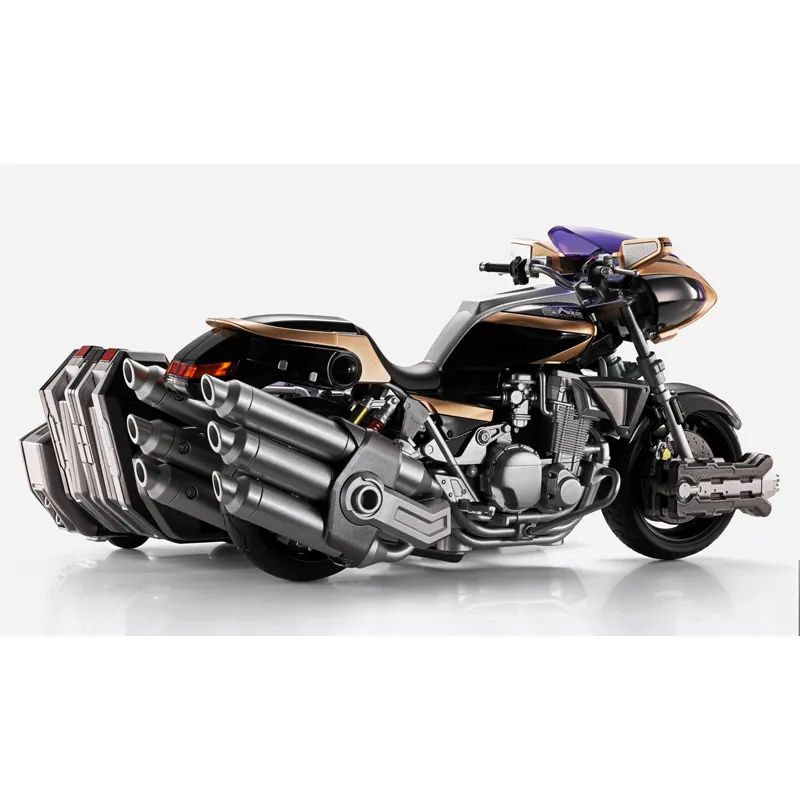 From Masked Rider 555 comes Side Basshar, the transforming-type variable vehicle ridden by now available for you to pair with the S.H.Figuarts (SHINKOCCHOU SEIHOU) MASKED RIDER KAIXA figure (sold separately)!It can transform from standard Vehicle Mode to the bipedal tank form Battle Mode! The gold body and silver mechanical parts are meticulously colored down to the finest details to faithfully recreating its on-screen appearance. The windshield and headlights are also made with clear parts for that extra touch of quality. The Smart Brain Motors logo and markings in various locations are accurately reproduced with pad printing.The Photon Generator engine portion has also been reproduced down to the finest details while also incorporating the motorcycle's transformation mechanisms, and without altering the appearance. The slim shape of the pipes that connect the motorcycle body and the sidecar are also similar to what is seen on the show. Supporting parts to enhance the stability of the sidecar portion are included as well. The greatest feature of this product is its ability to transform from Vehicle Mode into the super-sized Battle Mode. Replacing the standard arm parts with special exchangeable parts for Battle Mode allow both unique shaping and a wide range of movement. Some of those parts are use heavy die-cast construction to ensure adequate holding power. The claws on the right arm when in Battle Mode can move up and down. The X-Up Buster missile cannon on the left arm features an adjustable ejection pipe angle, allowing it to strike action poses similar to those seen on the show. Also included is two types of exchangeable hand parts that let S.H.Figuarts (SHINKOCCHOU SEIHOU) MASKED RIDER KAIXA (sold separately) and S.H.Figuarts (SHINKOCCHOU SEIHOU) MASKED RIDER NEXT KAIXA (sold separately, not available for order) hold the Side Basshar's handlebars. The figures can be mounted in both Vehicle Mode and Battle Mode. You can put your S.H.Figuarts (SHINKOCCHOU SEIHOU)MASKED RIDER KAIXA or S.H.Figuarts (SHINKOCCHOU SEIHOU)MASKED RIDER FAIZ figures (both sold separately) in the sidecar as well. This lets you relive distinctive scenes from the show.Also included as an optional part is the Kaixa Gear Box. The case can be opened and closed, and its internal molding and markings are different from those of the Faiz Gear Box included with the S.H.Figuarts AUTOVAJIN (VEHICLE MODE) (sold separately, not available for order).Furthermore, it also comes with a washing bucket, a detergent bottle, also a wearing rubber gloves and holding sponge hand parts that can be used with the S.H.Figuarts KUSAKA MASATO figure (sold separately, not available for order). This lets you have fun recreating the memorable vehicle washing scene from the show. Also included are a helmet and handlebar-holding hand parts for the S.H.Figuarts KUSAKA MASATO figure (sold separately, not available for order) and a helmet for S.H.Figuarts INUI TAKUMI (sold separately, not available for order). The goggle portions are made with clear material, and by attaching the exchangeable face parts included with each figure to the inside of the helmet, you can recreate scenes of them riding the vehicle! PACKAGE CONTENTS・Main body・Spare handlebar parts・Masked Rider Kaixa motorcycle-holding hand parts left/right × 2 types・Kaixa Gear Box・KUSAKA MASATO motorcycle-holding hand parts left/right・KUSAKA MASATO motorcycle helmet・KUSAKA MASATO washing scene hand parts set・KUSAKA MASATO washing scene bucket・KUSAKA MASATO washing scene detergent bottle・INUI TAKUMI motorcycle helmet・Joint parts set・Display standSIZE (APPROX.)Length: approx 210mmSPECIFICATIONSMATERIALSPC, PVC, DiecastTARGET AGEFor ages 15 and over.