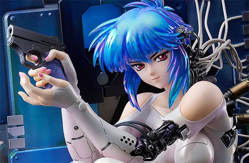 SpecificationsPre-painted Complete FigureScale: 1/7Size: Approx. H300mmMaterial: Plastic[Set Contents]Main figureBaseDetailsSculptor: Chieri (Max Factory)Paintwork: Ichiro AyabeFrom the manga Ghost in the Shell comes a scale figure of Motoko Kusanagi! The figure is based on the cover illustration of the first tankobon volume, with additional details, and can be displayed standing like a photo frame. Sculpted by Chieri, a sculptor active since the 1980s, the figure retains the atmosphere from the era. Motoko's hair and boots are aurora-plated like an optical camouflage, and her expression changes depending on the angle the figure is viewed from. The contrast between the textures of her bodysuit and mechanical parts is one of the many visual highlights the figure has to offer. Actual cords are used for the cord details. The base is made with metal for a realistic look. Fans of the series, be sure to add this impressive figure to your collection!*The figure cannot stand on its own. Please use the included base.CopyrightMasamune Shirow/Kodansha