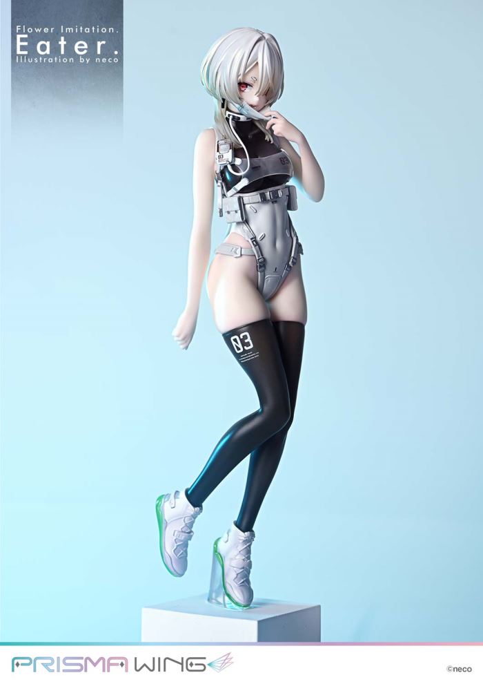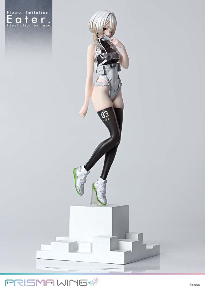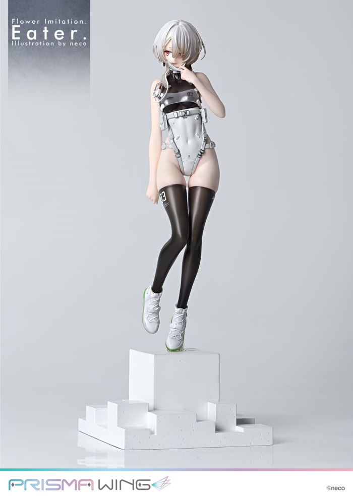 From Flower Imitation. by neco — the fragile and perilous “Eater.” emergesFrom illustrator neco comes the original artwork series Flower Imitation., a wordless story told through images. Its second figure, the girl Eater., now joins the line. A base of stacked white cubes. Lab-like transparent equipment. Behind the mask, a glimpse of white teeth and a red tongue tip. A fragile yet perilous beauty, captured in 1/7 scale, sparks your imagination.Fusing girl and machine — neco’s style captured in three dimensionsSharp, delicate lines with nothing wasted. A serene use of color that embraces space. The unique style of neco has been condensed into 1/7 scale, with even the tension created by accent colors faithfully expressed.Hide the lips, reveal the skin — stage the scene as you wishThe head includes an alternate face part with a mask that conceals the mouth. The jacket can also be removed, allowing you to enjoy the display in whichever look you prefer.Flower. and Eater. — a meeting of girls that leads the story forwardDisplayed alongside the first release, Flower., the world of Flower Imitation. takes on new dimensions. The scene created by these two girls will bring its presence vividly into your collection room.An acrylic block featuring artwork by neco is included as an exclusive bonus for purchases made through the Prime 1 Studio official online store!Specifications:Flower Imitation.–Themed BaseTwo (2) Swappable Faces (Mask-Off, Masked)Two (2) Swappable Right Arms (Mask-Off, Gripping Hand)Two (2) Swappable Left Arms (For Jacket, For Sleeveless Outfit)Detachable JacketAcrylic Block featuring Artwork by neco [BONUS ITEM]Notice:Prototype samples shown.Product details could be subject to change without further notice.Please note the final product specifications may differ because each product is Handmade.Since the product is still in the development stage, the Size (up to 10%) & Weight (up to 10kg) may be changed during the production stage.© neco