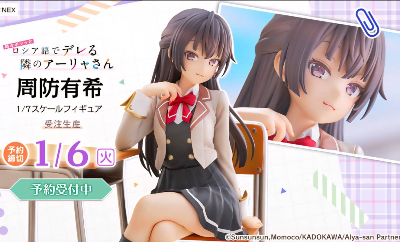 From the TV anime My Neighbor Arya-san Sometimes Whispers in Russian, comes a figure of Yuki Suo!From Furyu's high-quality hobby brand F:NEX, comes a 1/7 scale figure of Yuki Suo!The original pose was designed specifically for this figure, carefully capturing Yuki's characteristic calm and intelligent aura.The design, which combines small items such as desks and chairs, faithfully recreates the world of the work.Her soft smile and calm demeanor give her a unique look.¥20,900 (tax included)[Title] Sometimes I whisper in Russian Arya next door[Product name] Yuki Suo 1/7 scale figure【SKU】AMU-FNX1193[Sales method] Made-to-order sales[Product size] Total height: approx. 175mm (Base not included)[Specifications] Plastic, painted, finished product[Prototype] Moineau[Painting] Kazuya Kobo[Photography] Vaistar studio[Reservation acceptance period] November 11, 2025 10:00 ~January 6, 2026, 23:59[Delivery Date] Scheduled to ship in July 2026[Brand] F:NEX[Product type] Scale figure[Distributor] Furyu Co., Ltd.[Distributor] Furyu Co., Ltd.