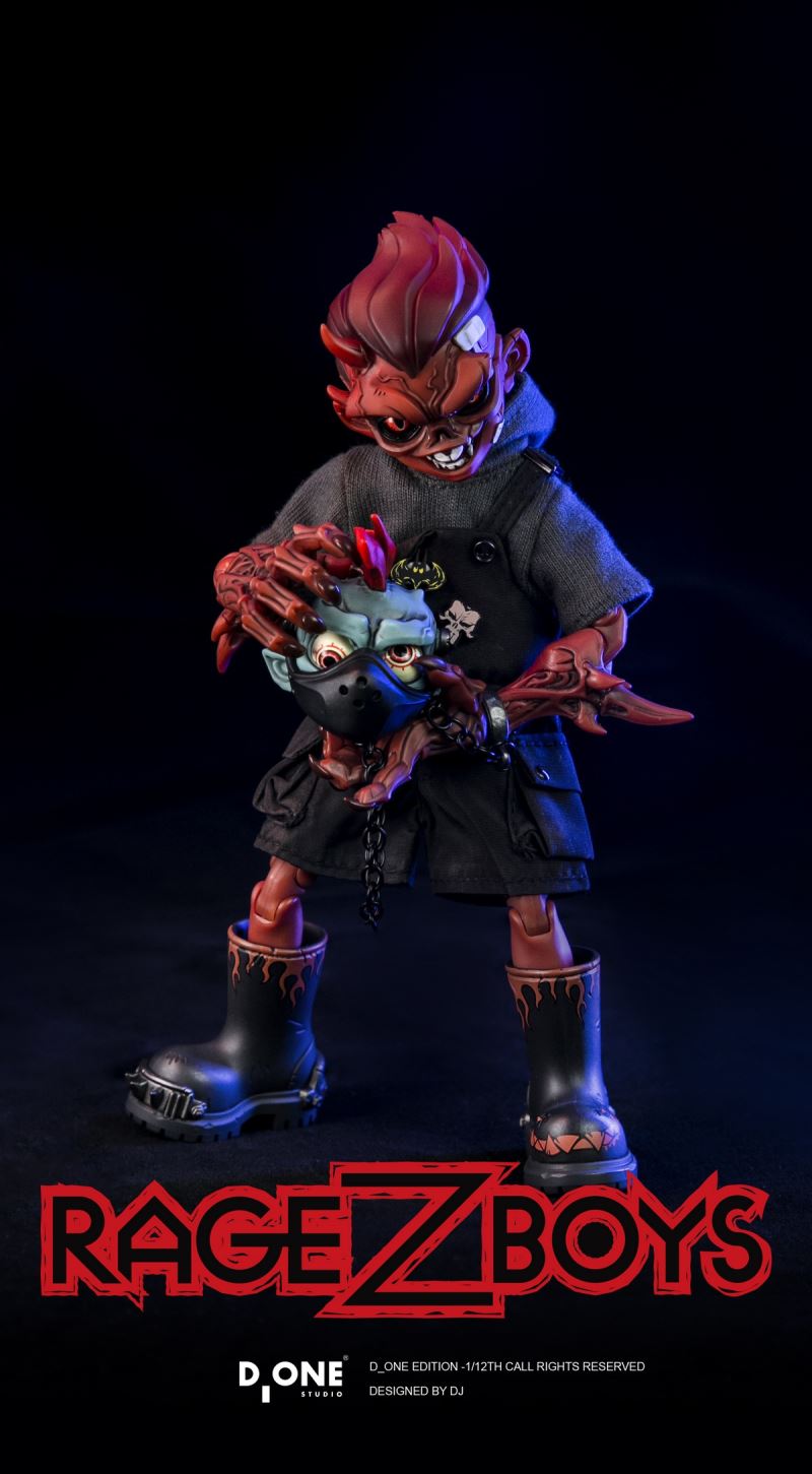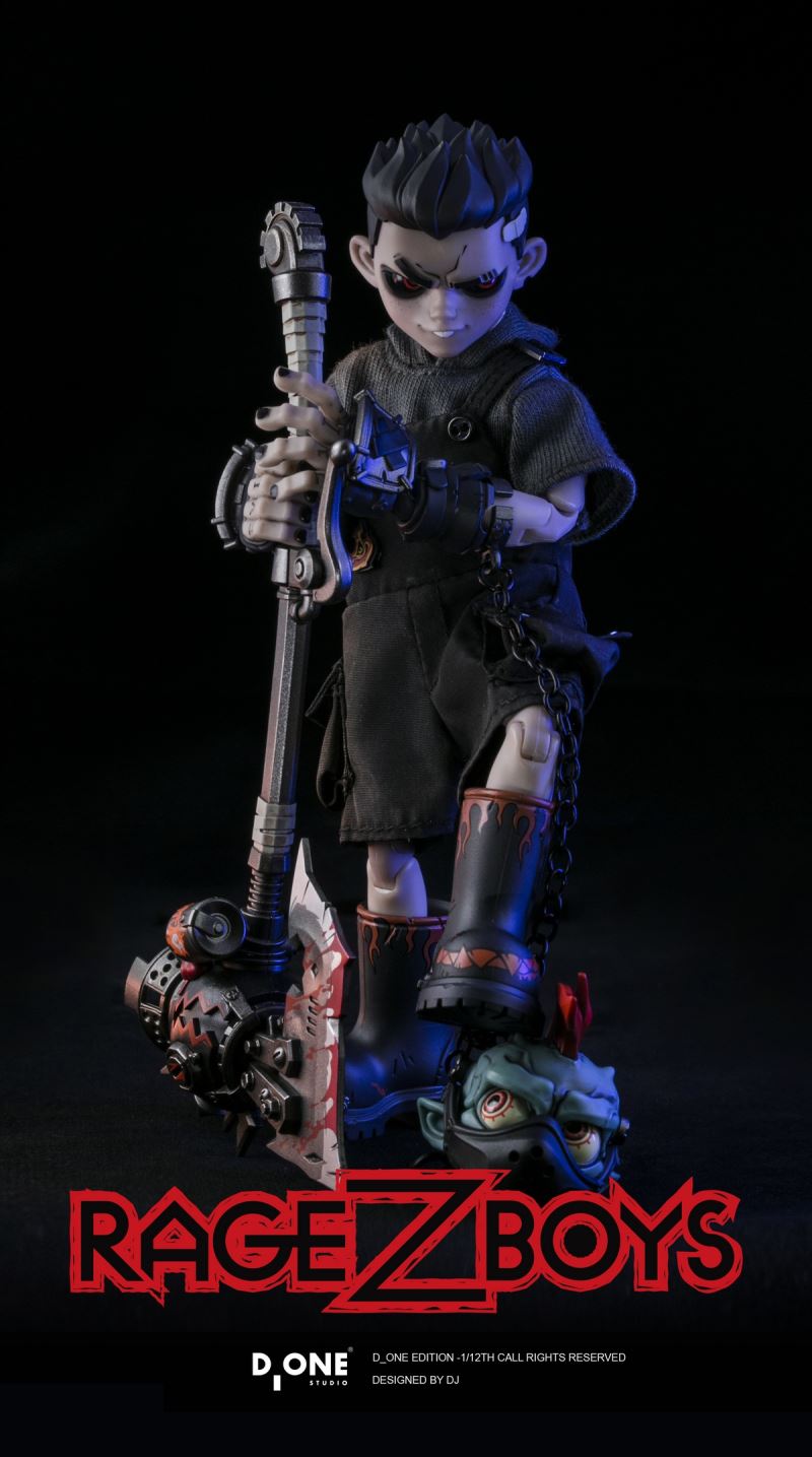Story Background: Years later, a zombie apocalypse sweeps across humanity, and the fate of adults falling into the horde is a heavy shackle. Only a very few can break free of these constraints, transforming into special zombies who retain consciousness and emotions and awaken superpowers—and behind this apocalyptic catastrophe, a secret organization uses six original zombiesto control everything. A group of teenagers, bound by the burning bonds of family and love, use their awakened superpowers as weapons to struggle for survival in a wasteland interwoven with science fiction and machinery. They fight against the zombie horde and conspiracy, launching a passionate resistance against the organization that controls everything, all to protect their loved ones.-------------------------Name: D_ONESTUDIO RAGE-ZBOYS Series - Tooth Boy 1/12 Scale Articulated FigureVersion: Everyday VersionPre-sale Price: NT$399In-stock Price: NT$430Barcode: 6971701452228Shipping Time: Q2 2026Design: DJProduction: D_ONE STUDIOAccessories:- Tooth Boy Standard Head Sculpt *1 (Articulated Eyes)- Tooth Boy Injured Face *1 (Replaceable)- Short-sleeved Sweatshirt *1 (Distressed)- Overalls *1 (Distressed)- Rain Boots *1 Pair (Magnetic)- Mask *1 (Magnetic)- Hand Axe *1 (Removable)- Hero Badges *3 (Removable)- Iron Shark Mouth Fire Bomb *1 (With Light)- Flame Effect Part *1 Base body *1- Hands *8- Cuffs *1 pair- Dagger *1- Hand axe pendant *1- Adjustment tool *1-------------------------Name: D_ONESTUDIO RAGE-ZBOYS Series - Tooth Boy 1/12 Scale Action FigureVersion: Out of Control VersionPre-sale Price: NT$699In Stock Price: NT$730Barcode: 6971701452235Shipping Time: Q2 2026Design: DJProduction: D_ONE STUDIOAccessories:- Out of Control Tooth Boy Zombie Head Sculpture *1 (Possessable Eyes)- Out of Control Tooth Boy Standard Head Sculpture *1 (Possessable Eyes)- Out of Control Tooth Boy Injured Face *1 (Replaceable)- Out of Control Zombie Head Solo *1 (Possessable Eyes) -Out of Control Short-Sleeve Sweatshirt *1 (Distressed)- Out of Control Overalls *1 (Distressed)- Out of Control Rain Boots *1 Pair (Magnetic) Out-of-Control Hand Axe *1 (Detachable)- Out-of-Control Iron Shark Mouth Fire Strike *1 (With Light)- Out-of-Control Zombie Forearm *1Pair (Quick Plug) - Out-of-Control Zombie Hand Piece *4- Out-of-Control Humanoid HandPiece *8 - Out-of-ControlCuffs *1 Pair - Out-of-Control Dagger *1- Out-of-Control Zombie Mask *1 - Out-of-Control Handcuff Chain *1- Flame Effect Part*1 - Smoke Mask *1 (Magnetic)- Base Body *2 (Skin/Red)- Hero Badge *3 (Random)- Hand Axe Pendant *1- Adjustment Tool *1