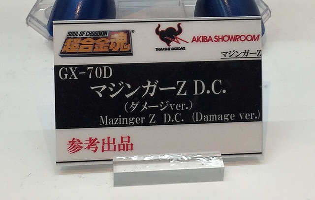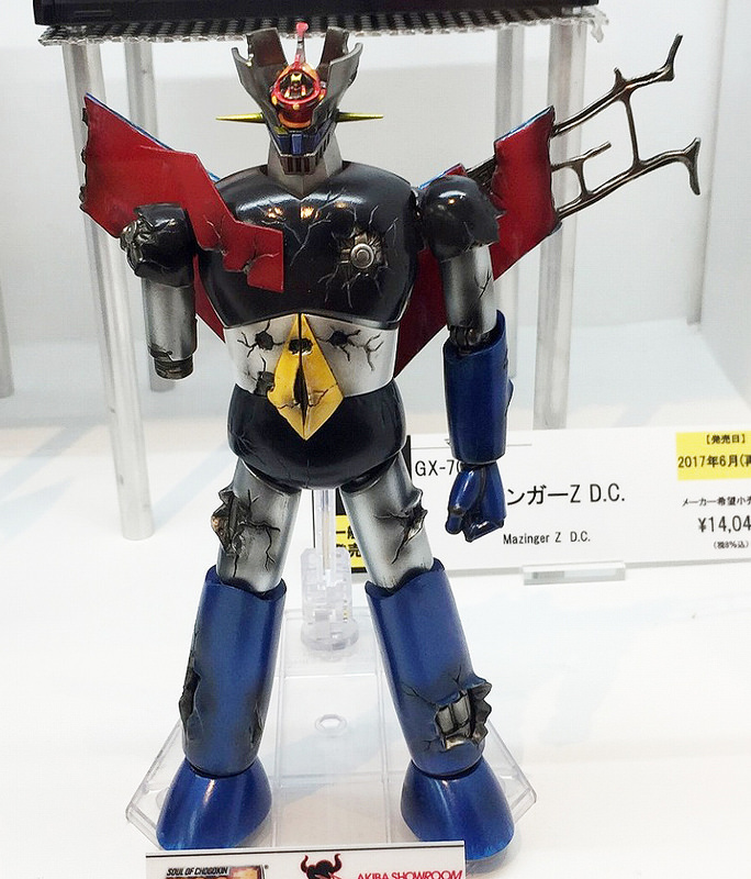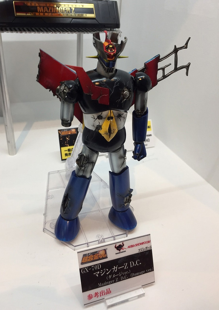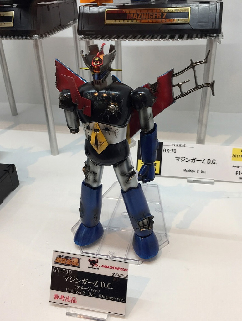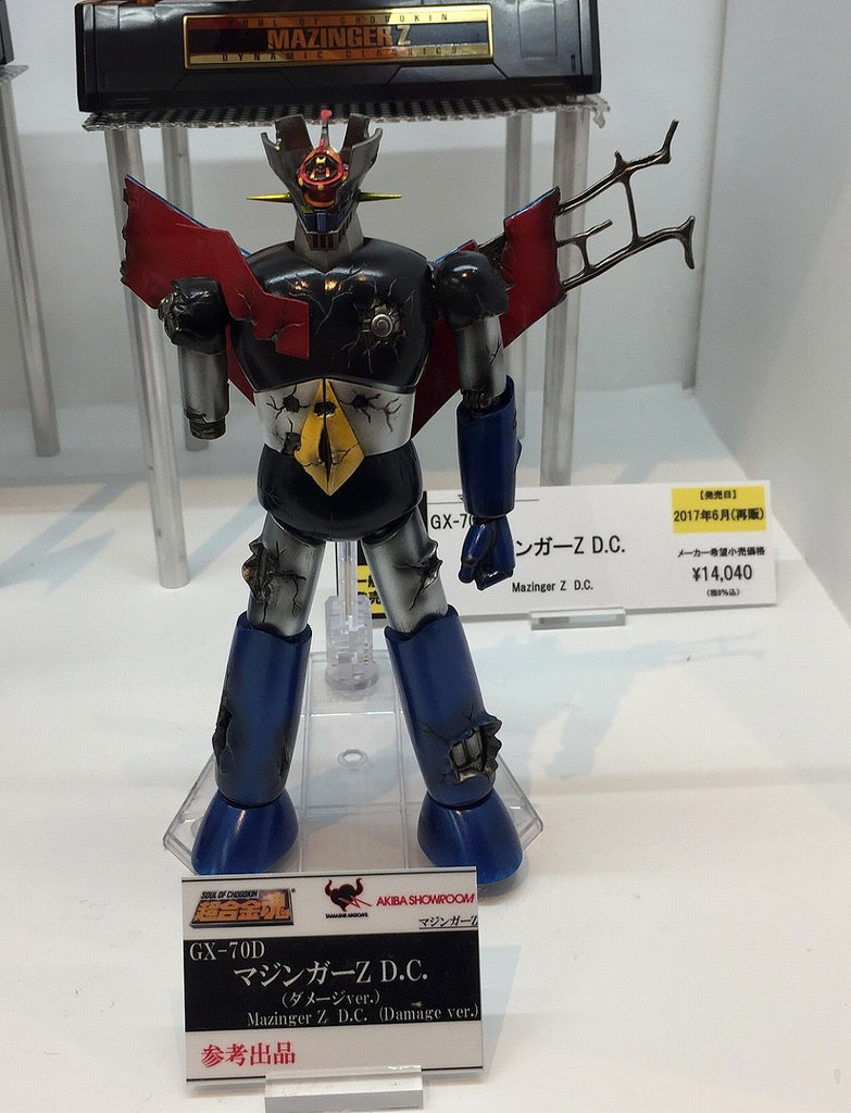 Soul of Chogokin GX-70D Mazinger Z DC Damage Ver.ABS, PVC, made by die castingTotal Height: about 17 cmPublisher: BandaiProduct Details: Body, Right Arm Rocket Punch, 2 Left Wrist for Sword Holding, 2 Mazinger Blades, a set of exclusive pedestal, Great Mazinger replacement for first appearancePrice: 13,000 yen (excluding tax and shipping fee)Scheduled for shipment in November 2017