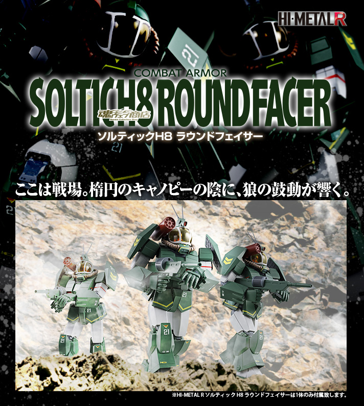 HI-METAL R SOLTIC H 8 Round PhaserABS, die cast, PVC made figure madeTotal Height: about 16 cmPublisher: BandaiItem Details: Main body, Replacement right wrist 2 types, Replacement left wrist 3 types, Linear gun, Missile pod, Mag launcher, Pilot figure, Soul STAGE joint partsPrice: 11,880 yen (tax included)Scheduled for shipment in November 2017