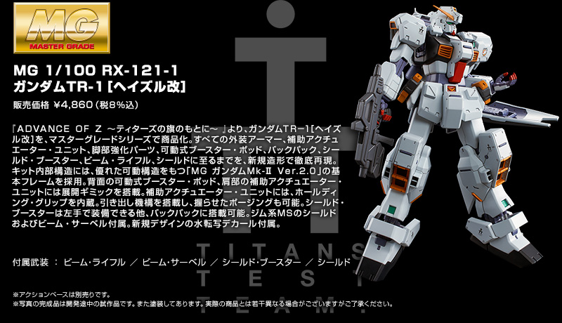 MG 1/100 Gundam TR-1 [Haze Ren]Price: 4,860 yen (tax included)Reservation acceptance start: 13:00 on June 23rd 2017Delivery date: Scheduled for shipment in September 2017