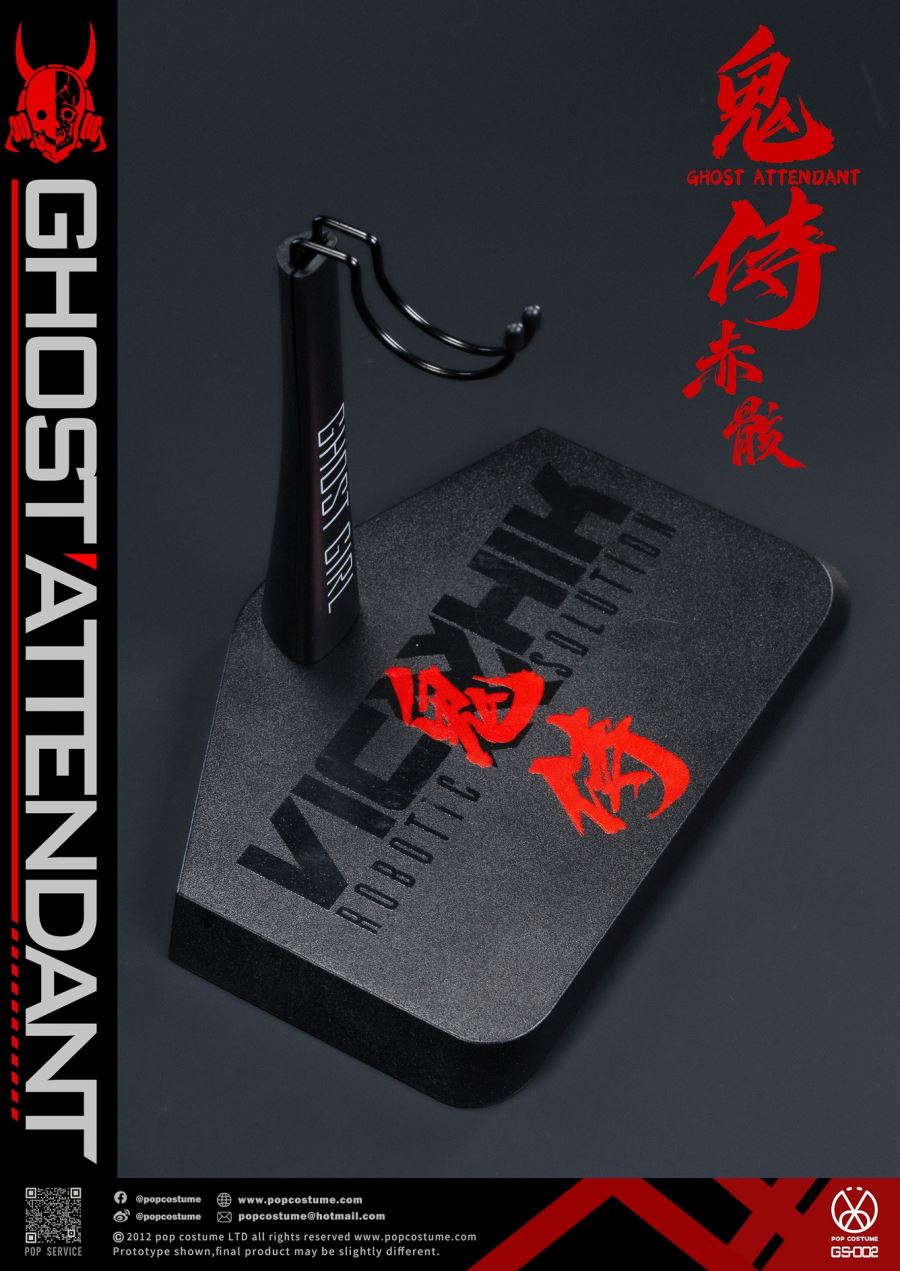 POP COSTUME GS-002 Ghost Attendant Red Remains Action FigureIn the depths of the Underdark, haunted by evil spirits, the battle grew intense and fierce.During the fight, multiple parts of the body were damaged, and functions were temporarily lost.In this battle, all the evil spirits were slain, no one escaping.Upon recovery, return—the will to slay demons remains unyielding...1. Head with movable eyes*12. Replaceable face with luminous eyes*13. Female body*14. Trench coat*15. Shirt-front*16. Leggings*17. Arm sleeves*1 pair8. Boots*1 pair9. Mechanical arm*1 pair10. Mechanical hands with movable fingers*1 pair11. Magnetic left shoulder armor*212. Left ammunition pack*113. Weapon belt on the right leg*114. Sword stand*115. Long sword*116. Short sword*117. The linking module of arm and sword stand*118. Mask*119. Magnetic figure stand*1