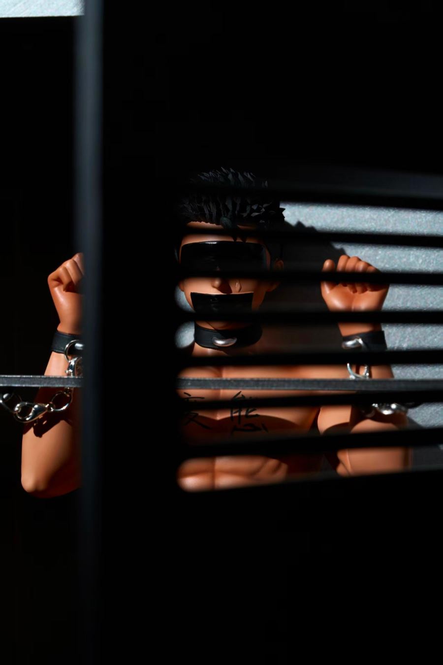 Brand:BDSM StudioProduct name:Original Character Black Skin 'Light'ES:90Scale:1:6Size:H30 W15CM*ConfigurationTwo heads+chain+cabinet(door can be opened and closed)+dicks*4