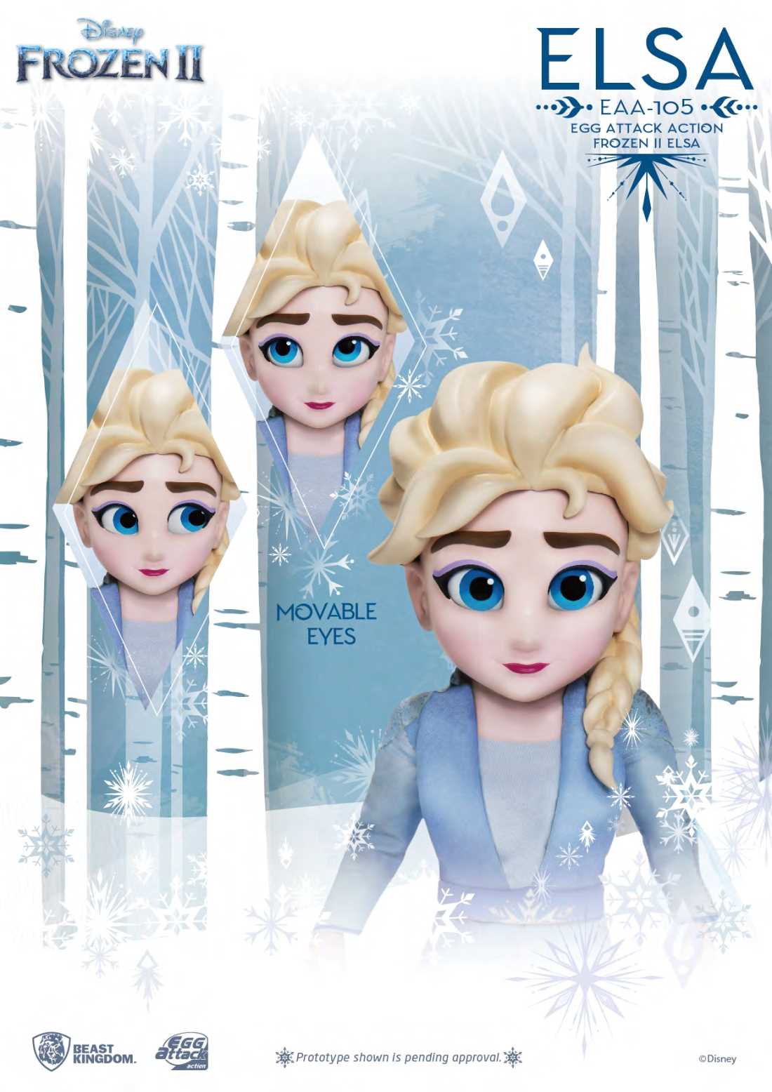 In Disney latest, soon to be celebrated animated feature, Frozen 2, Elsa finds her past catching up with her in many unexpected ways. She goes on a new journey of self-discovery from forests, to snowy mountains and even rides the high seas. As Elsa is on a path to once again reclaim her magical powers, what better way for collectors to take home the latest highly posable, stylized action figures from the celebrated Entertainment Experience Brand; Beast Kingdom. The 6-inch Egg Attack Action Elsa is fully posable with 2 replacement faces showing Elsa in different moods perfect to replicate the many scenes of the movie.