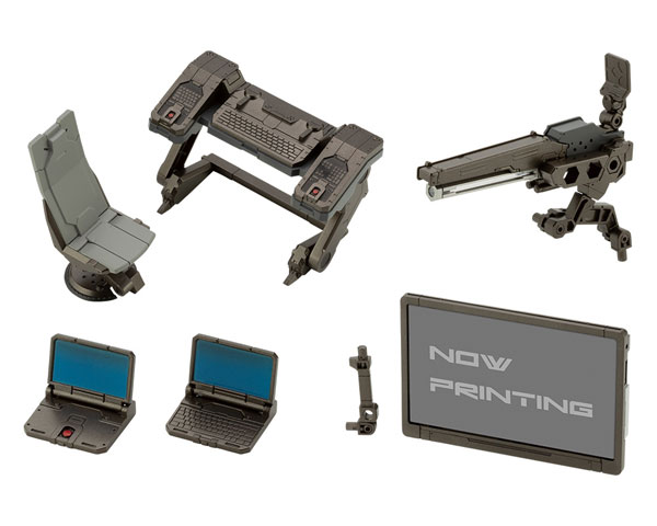 Kit BlockScale: 1/24Size: Approx. L150 x 75mm (Panel x1)[Set Contents]-Main item-Floor panel x8-Wall panel x8-Joint A x24 sets-Joint B x24 sets-Joint C x42 sets-Joint D x42 sets-Lift panel x4-Supporting pole (long) x4-Supporting pole (short) x4-Hexagram x12-Supporting pole Joint part x8-Lift panel joint x8 sets-Joint E x8 sets-Stair x2 sets-Stair connection part A x1 set (intermediate connection)-Stair connection part B x2 sets (w/off set)-Stair connection part C x1 set (w/o off set)-Stair connection partD x2 sets (base)-Control panel x1-Large monitor x1-Situation card for large monitor x1-Chair x1-Notebook type terminal A x1-Notebook type terminal B x1-Sentry gun x1Sculptor: Yuichi KuwamuraKOTOBUKIYA