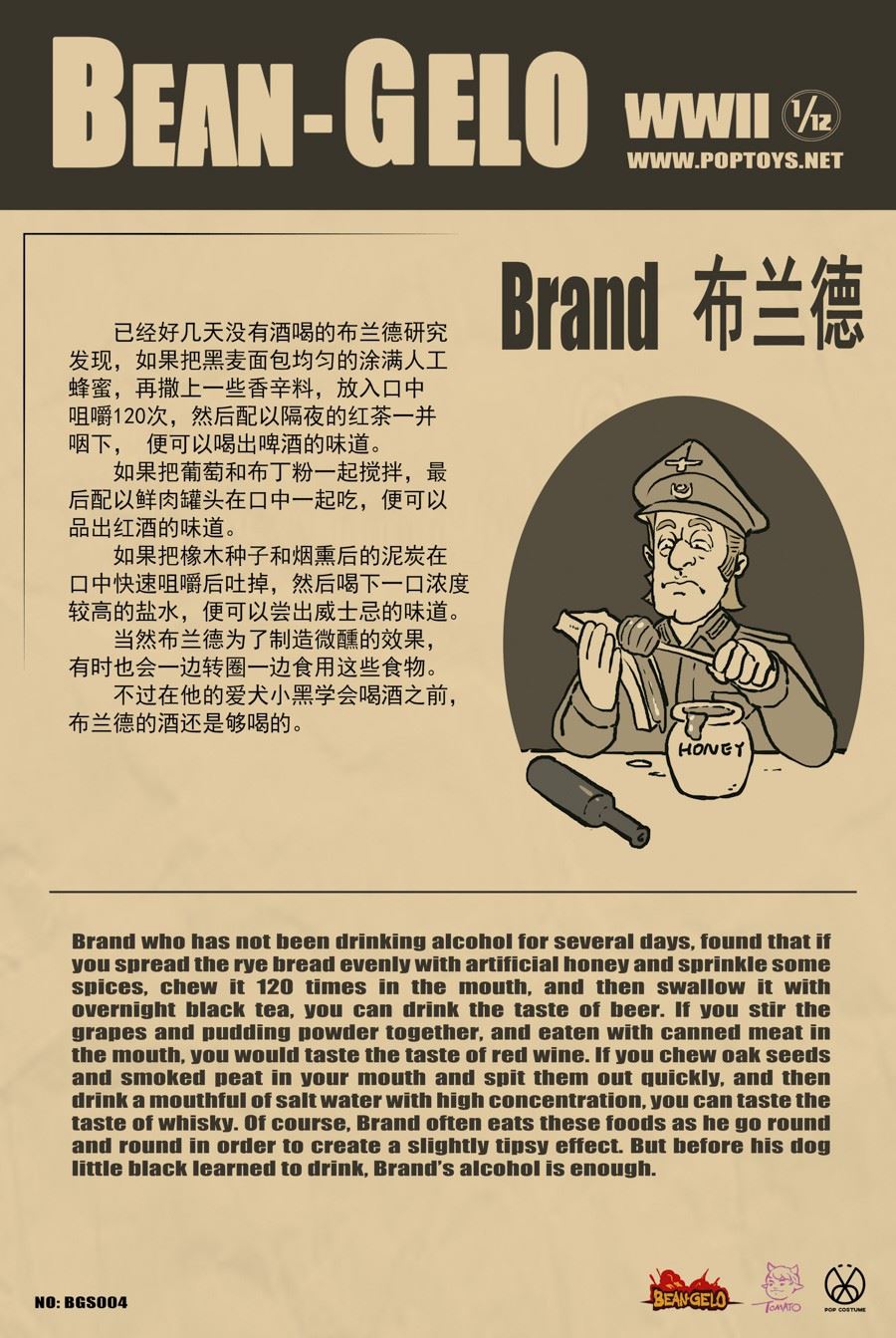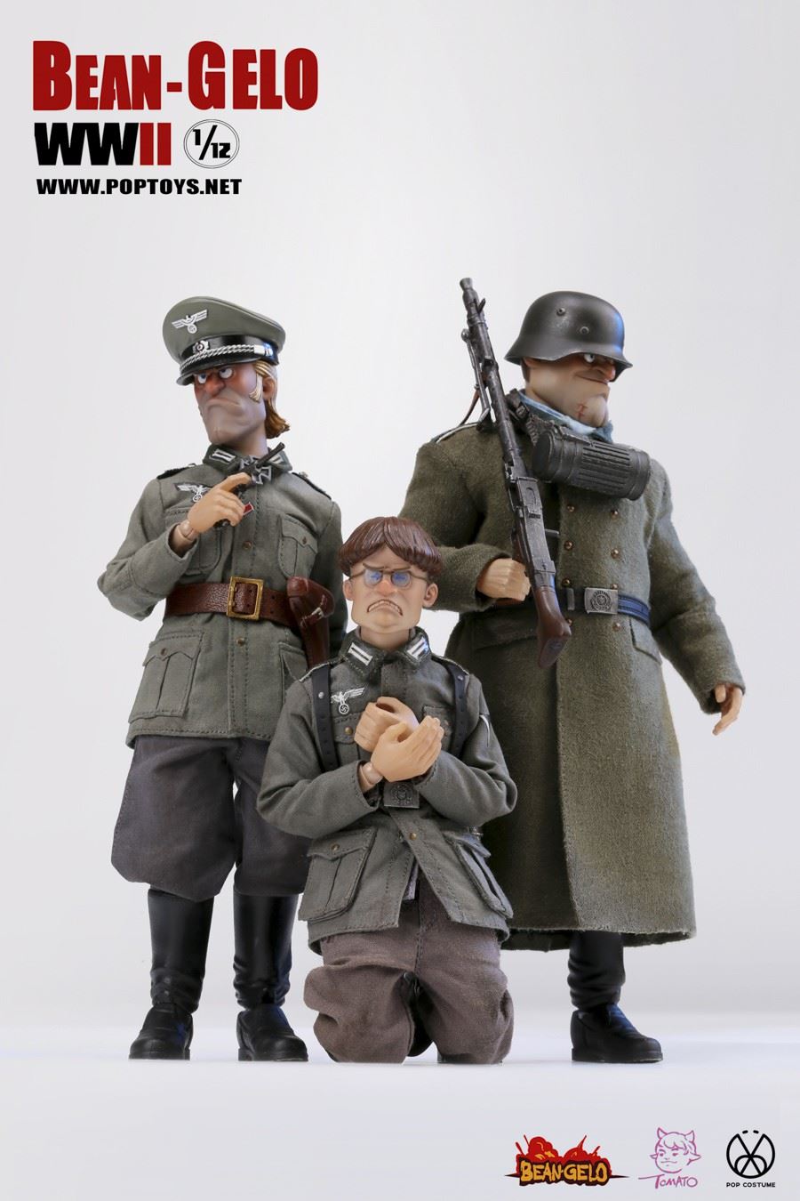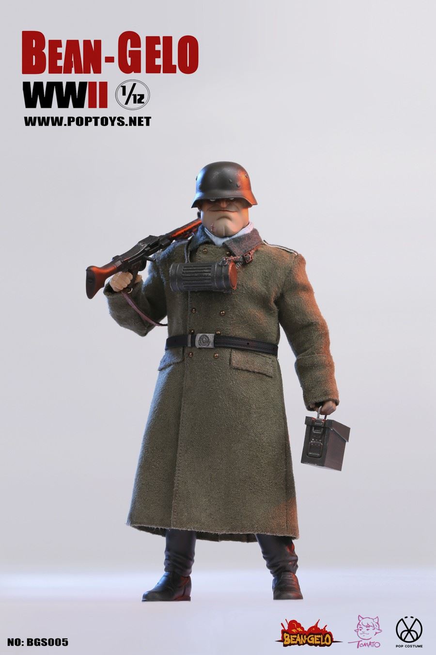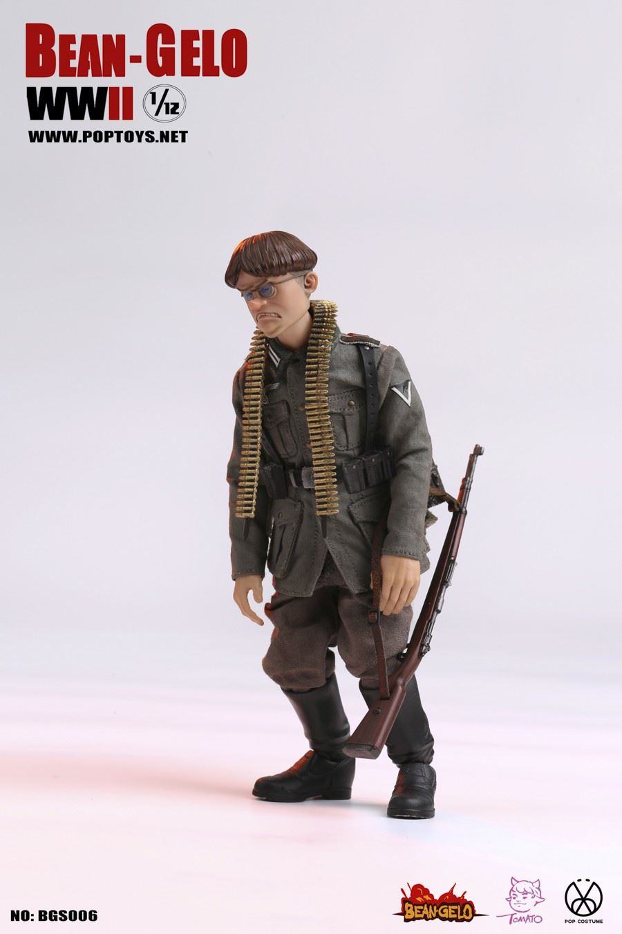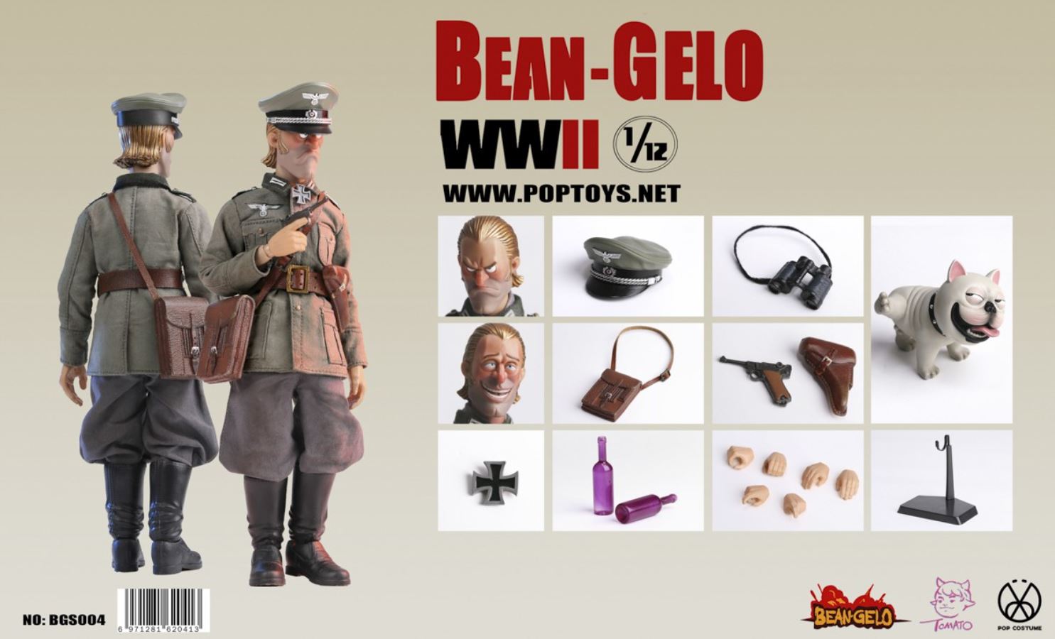POPTOYS new products: 1/12 scale big head soldier series Beautiful Western Forest second bullet-Brand/Kahn/HansPOPTOYS 1/12 big head soldier series BGS004 BrandPOPTOYS 1/12 big head soldier series BGS005 KahnPOPTOYS 1/12 Big Head Soldier Series BGS006 Hans======================POPTOYS 1/12 Big Head Soldier Series BGS004 BrandBarcode Number: 6971281620413Head Carving*21/12 Body*1Hand*6Shirt*1Military Uniform*1Breeches*1Leather Boots*1 PairBelt *1 MilitaryCap*1Iron Cross Medal*1Telescope*1Map Bag*1Ruger Pistol*1Pistol Set*1red wine bottle*2French fighting dog*1bracket*1======================POPTOYS 1/12 Big Head Soldier Series BGS005 KahnBar Code: 6971281620420Head Carving*11/12 Body*1Hand Shape *6Shirt*1Coat*1Pants*1Leather Boots*1 PairBelt*1Scarf*1Steel Helmet *1goggles*1ammunition box*1machine gun*1machine gun tripod*1bullet chain*1gas mask tube*1white bird egg*1woodpecker*1bracket*1bird egg*1 (random color: golden bird Eggs)The bird egg accessories in this product will have a certain number of gold paintings and random boxes. Please pay attention.======================POPTOYS 1/12 Big Head Soldier Series BGS006 HansBar Code: 6971281620444Head Carving*11/12 Body*1Hand Shape *6Shirt*1Military Uniform*1Trousers*1Shorts*1Leather Boots*1 PairBelt*1Magazine bag*3bullet bag*1Y-belt*1blanket*1engineer shovel*1lunch box*1kettle*1hemp rope*2bullet chain*198K*1bonfire*1iron pot*1branch*3soil switch Mouse*1bracket*1======================Gelo-Series 1/12 Bean POPTOYS Beautiful WesterwaldBrand / Kahn / HansPOPTOYS 1/12 Bean Gelo Brand Series BGS004POPTOYS 1/12 Bean Gelo Series BGS005KahnPOPTOYS 1/12 Bean Gelo Series BGS006 HansPOPTOYS 1/12 Bean Gelo Brand Series BGS004the BAR CODE:6971281620413List:Head*21/12 Body*1Hands*6Shirt*1Uniform*1Breeches*1 pairBoots*1 pairBelt*1Army cap*1Iron Cross*1Telescope*1Map pack*1Ruger pistol*1Holster*1Wine bottle*2French Bulldog*1Figure stand*1======================POPTOYS 1/12 Bean Gelo Series BGS005KahnBAR CODE:6971281620420List:Head*11/12 Body*1Hands*6Shirt*1Coat*1Pants*1 pairBoots*1 pairBelt*1Scarf*1Helmet*1Safety goggles*1 pairAmmunition box*1Machinegun*1Machinegun stand*1Bullet chain*1Gas Mask*1White Birds' eggs*1Woodpecker*1Figure Stand*1eggs*1(Random Golden eggs)Description: there will be a certain number of bird egg accessories in this product, which will be coated with gold randomly. Please pay attention.======================POPTOYS 1/12 Bean Gelo Series BGS006 HansBAR CODE:6971281620444List:Head*11/12 Body*1Hands*6Shirt*1Uniform*1Pants*1 pairShorts*1 pairBoots*1 pairBelt*1Ammunition Pouch*3Bullet pocket*1Y-type Straps*1Blanket*1Tri-fold shovel*1Lunch box*1Water jug*1Hemp rope*2Bullet chain*198K rifle*1Bonfire*1Iron pan*1Branch*3Marmot*1Figure stand*1