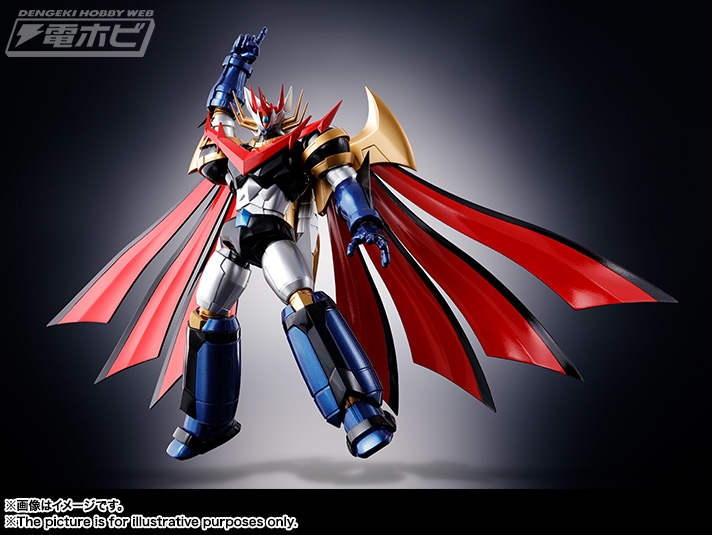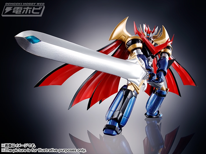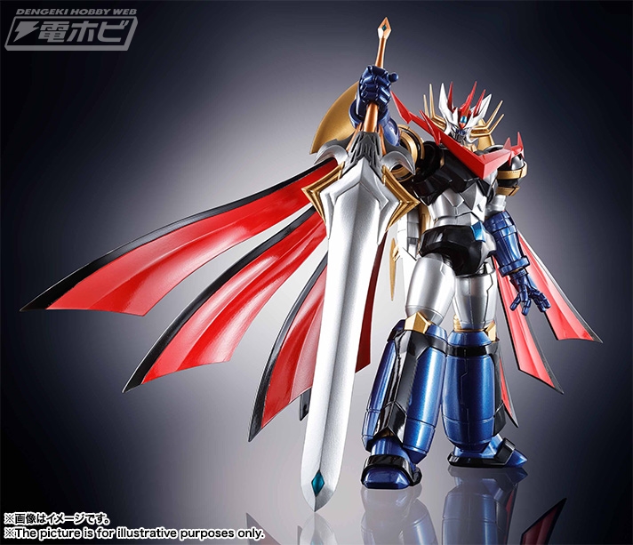 Super robot super alloy Mazin emperor GABS & PVC & die cast made movable figureTotal Height: about 17.5 cmPublisher: BandaiIncludes: Main body / Emperor sword (large sword) / back mantle / replacement right wrist × 3 / replacement left wrist × 2 / chest effect / joint part for displayPrice: 12,000 yen (excluding tax)Scheduled to be released in March 2017