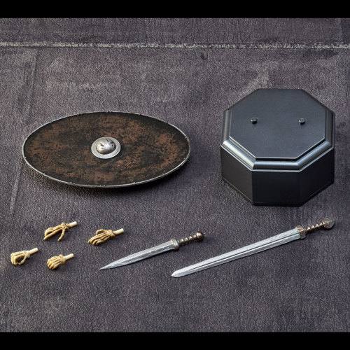 "Chase Fighter Sekutor" เป็นนักดาบที่พัฒนามาจากนักสู้หมวกปลา Murmillow ที่โดดเด่นด้วยรูปทรงของหมวกกันน็อกสีฉูดฉาด หมวกกันน็อคแบบเรียบง่ายที่มีรูที่ดวงตาทั้งสองข้างเพื่อลดการตกแต่งที่วางไหล่โลหะเฉพาะทางด้านขวาที่ผูกกับร่างกายด้วยเข็มขัดหนังและแผ่นหน้าแข้งโลหะขนาดใหญ่ที่เท้าทั้งสองข้างทำให้ใช้งานได้จริงมากขึ้น สไตล์. ร่างที่ต่อสู้กับกริชสองคม Gladius และโล่ขนาดใหญ่ Ketratus ถูกจำลองขึ้นพร้อมกับการแสดงออกของโลหะที่ใช้แล้ว เช่นเดียวกับนักสู้หมวกกันน็อคปลา Murmilow โครงกระดูกใช้ข้อต่อ 4 มม. ที่พัฒนาขึ้นใหม่ อุปกรณ์ทั้งหมดของนักสู้สามารถถอดออกได้และสามารถแสดงเฉพาะโครงกระดูกได้ อุปกรณ์ประกอบด้วยกริชขั้นพื้นฐาน Gladius โล่รูปไข่ Ketratus และดาบยาว Spata นอกจากนี้อุปกรณ์แต่ละชิ้นยังแสดงออกถึงรอยขีดข่วนและรอยบุบบนอุปกรณ์ที่ใช้และพื้นผิวโลหะที่จางลงและเปล่งประกายหมองคล้ำ Takeya Jizai okimono Pursuit Fighter Sekutor เวอร์ชั่นสีเต็ม ผลิตภัณฑ์สำเร็จรูป PVC และ ABS ความสูงโดยรวม: ประมาณ 150 มม ผู้อำนวยการสร้าง: Takayuki Takeya, Takashi Yamaguchi ต้นแบบ: Kenichi Takagi, Shunichi Shinjima ต้นแบบดิจิทัล: Tsuneyuki Ida สถานที่เคลื่อนย้ายได้: รวม 17 แห่ง อุปกรณ์เสริม: กริช (Gladius), ดาบยาว (สปาต้า), โล่ขนาดใหญ่ (Ketratus), มือเสริม x 4, แท่นเฉพาะ สำนักพิมพ์: Kaiyodo ราคา: 6,800 เยน (ไม่รวมภาษี) กำหนดฉายในวันที่ 22 ธันวาคม 2020