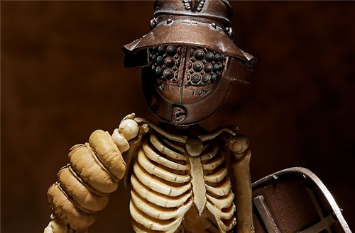 อุปกรณ์ Gladiator ทั้งหมดถอดออกได้และสามารถแสดงเฉพาะโครงกระดูกได้ ภายใต้หมวกกันน็อกมีกะโหลกศีรษะศีรษะและฟันที่หายไป